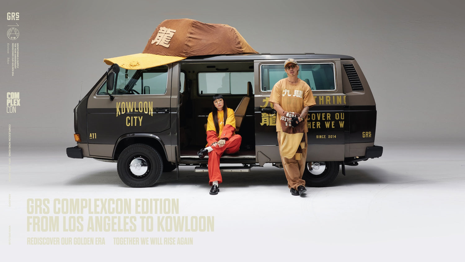SUN FADED HAND STENCIL WASHED “KOWLOON” TEE / SEPIA BROWN