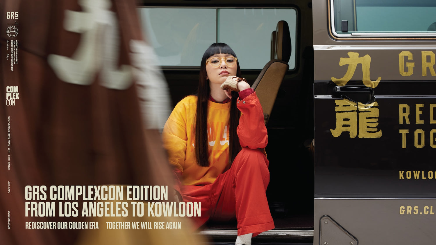 SUN FADED HAND STENCIL WASHED “KOWLOON” TEE / SIGNAL ORANGE
