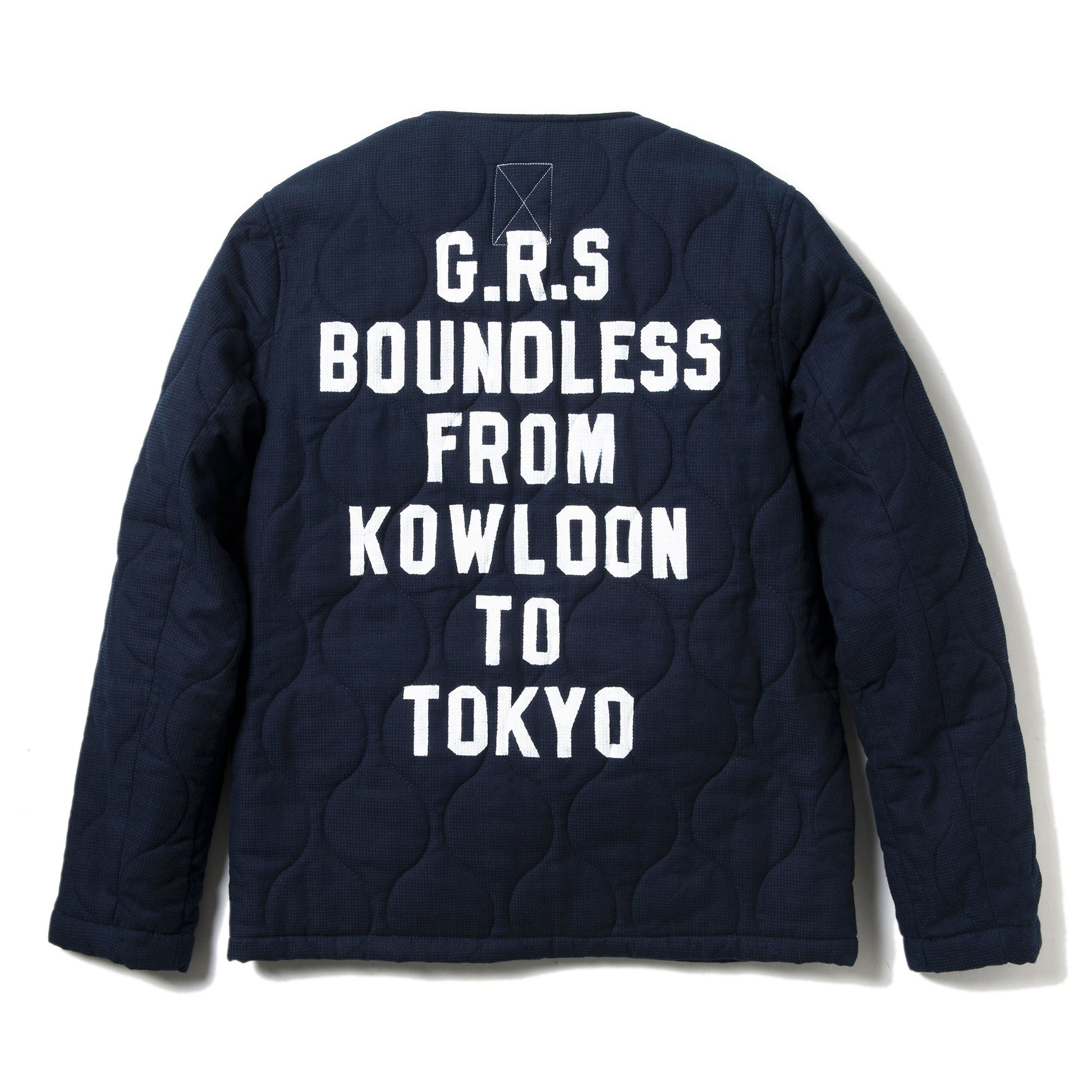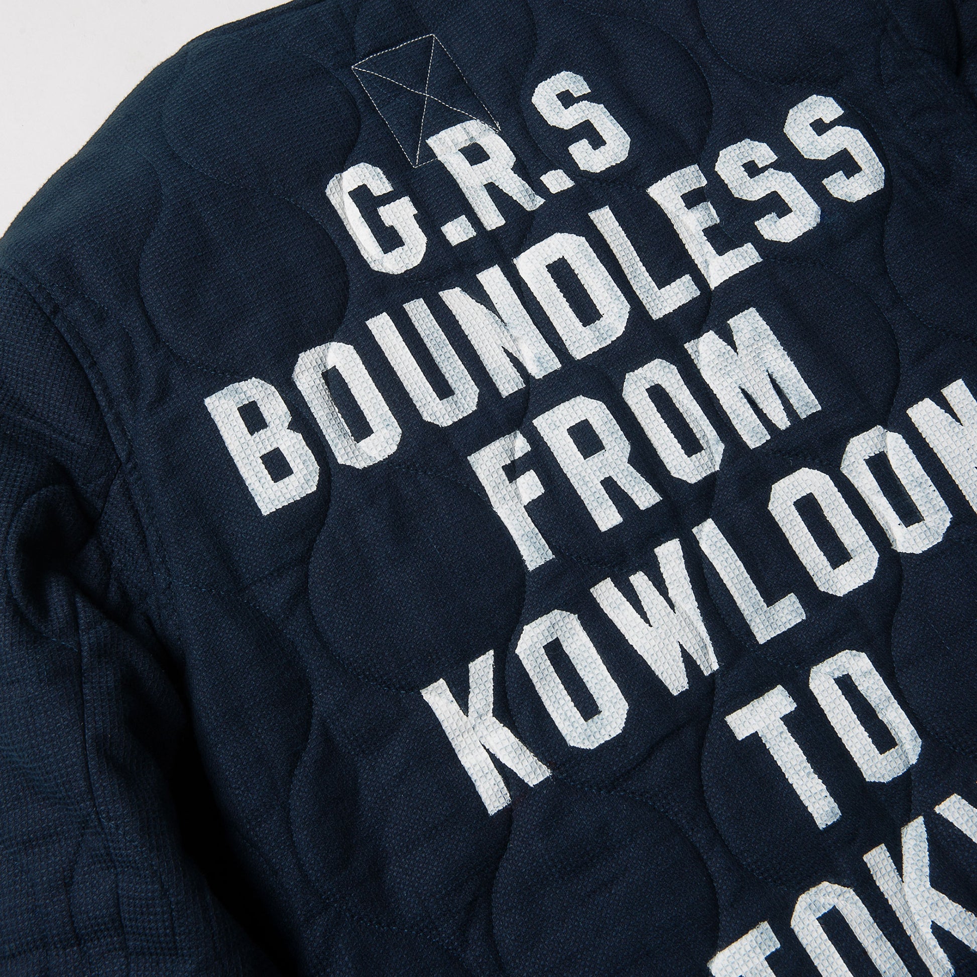 Inspired by the classic quilted liner of US military field jacket, the Boundless Sashiko Quilting Series is a contemporary rendition combining the efforts of Sashiko craftsmen from Okayama, Japan and emerging sign painter, Man Luk, from Hong Kong. Sashiko, the traditional embroidery technique developed during the Edo era (1615-1868) in Japan, along with the vintage Kendogi fabric subtly highlighting the pockets, demonstrate a timeless beauty that never fades.