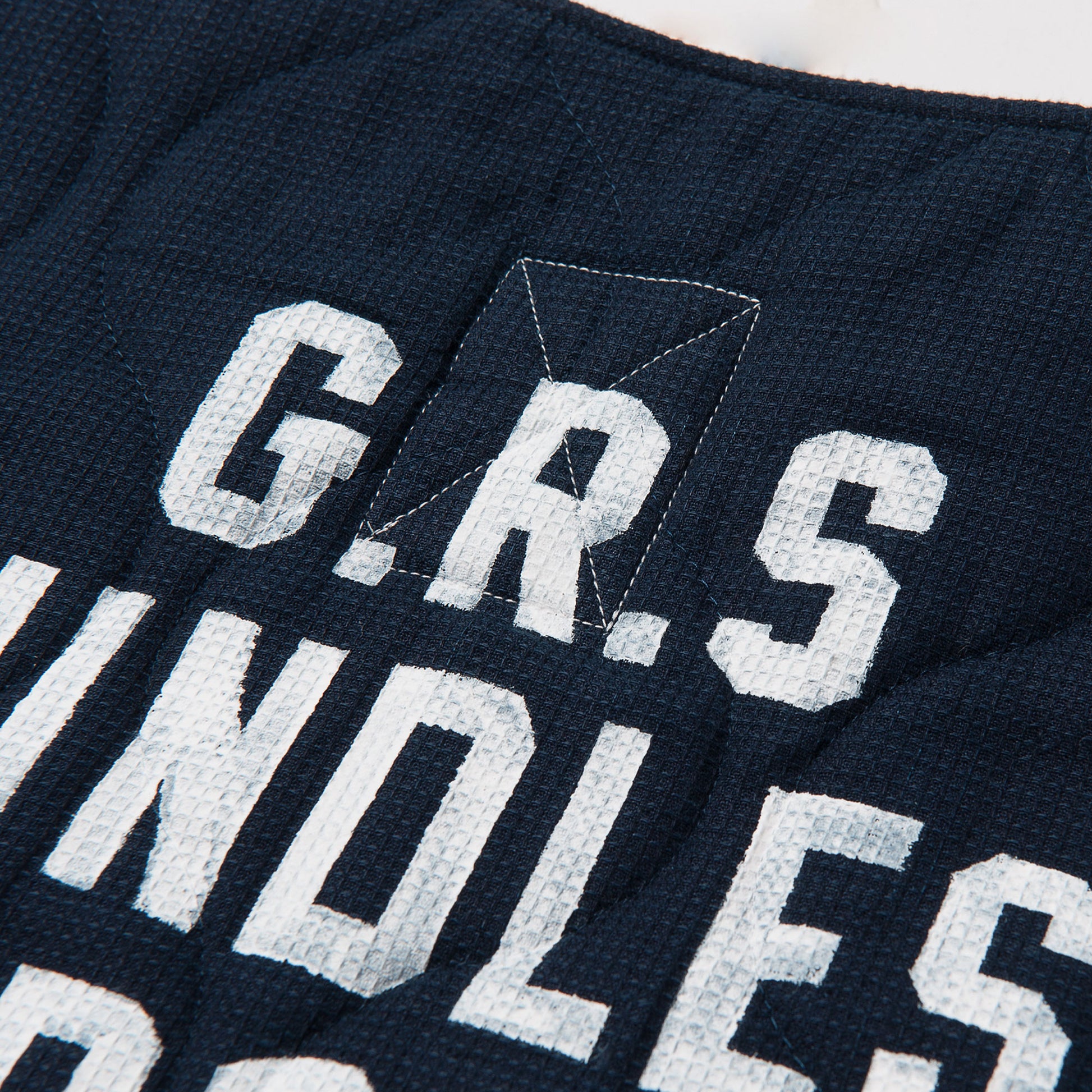 アメリカ軍のフィールドジャケットに用いられたキルティングライナーをイメージし、日本に古くから伝わる「刺し子」の技法、ヴィンテージ感のある剣道着の生地、そして香港のサインペインター・MAN LUK(マン・ルック)さんが手を加えたカリグラフィーをこのシリーズに。