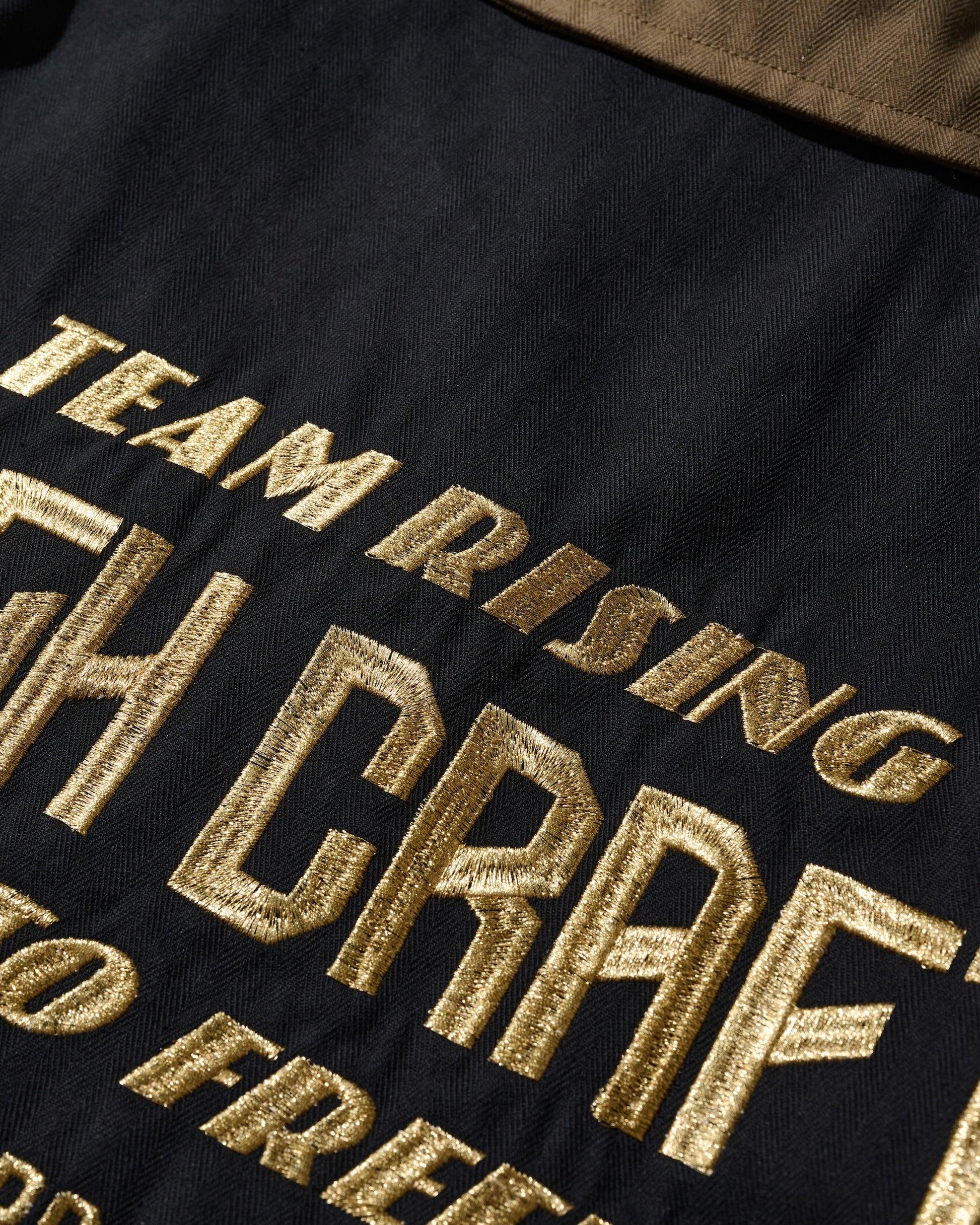 The GRS x Rough Crafts “SHIT YEAR.GOOD PEOPLE” collection bridges Hong Kong’s car culture with the world. Building on the strong reception of the Stadium Variety Jacket earlier this year, the design continues with the traditional varsity sports jacket format, featuring genuine leather sleeves, extensive embroidery, and patches to convey cultural messages. Every detail, from buttons to ribbed cuffs, adheres to classic specifications.