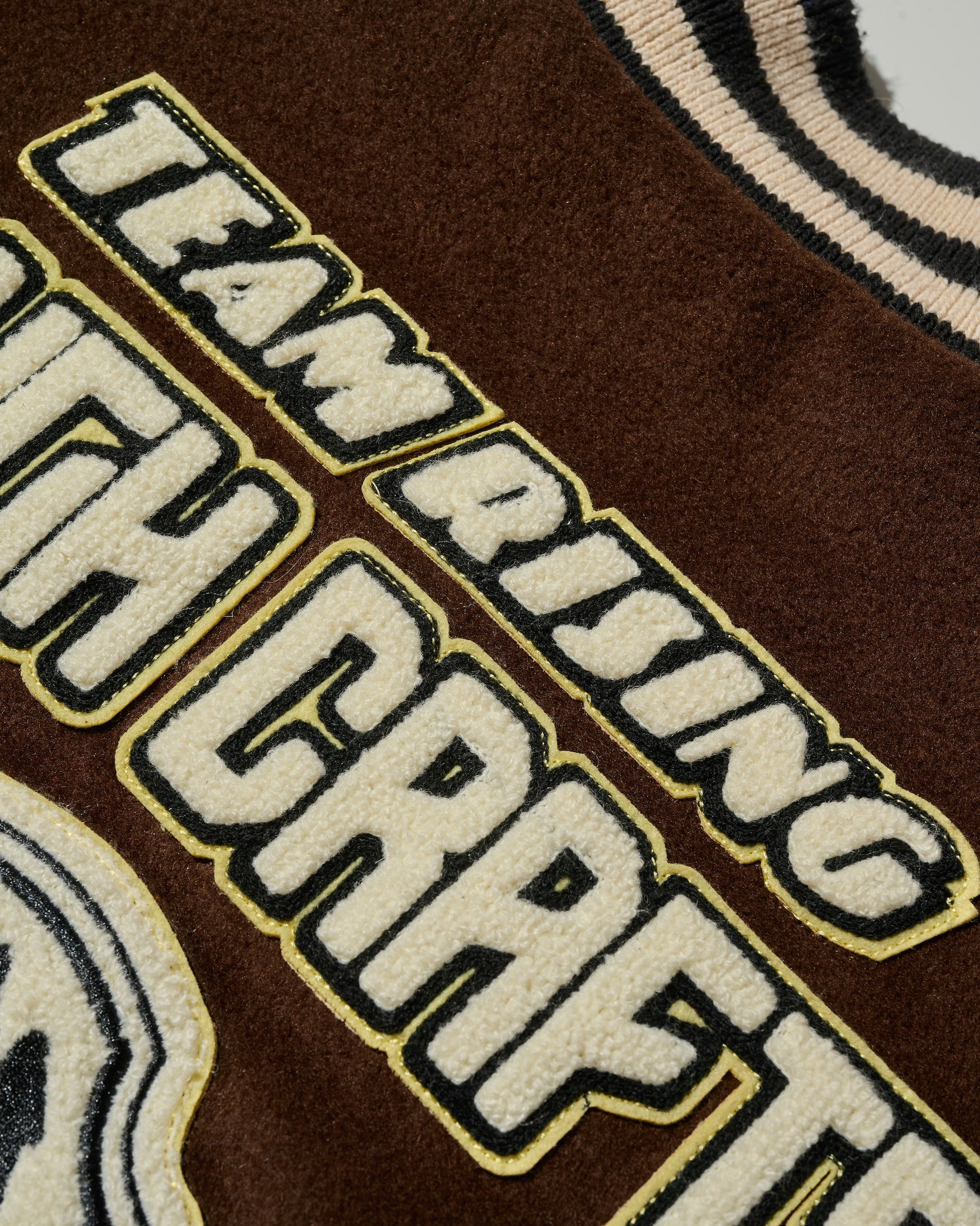 The GRS x Rough Crafts “SHIT YEAR.GOOD PEOPLE” collection bridges Hong Kong’s car culture with the world. Building on the strong reception of the Stadium Variety Jacket earlier this year, the design continues with the traditional varsity sports jacket format, featuring genuine leather sleeves, extensive embroidery, and patches to convey cultural messages. Every detail, from buttons to ribbed cuffs, adheres to classic specifications.