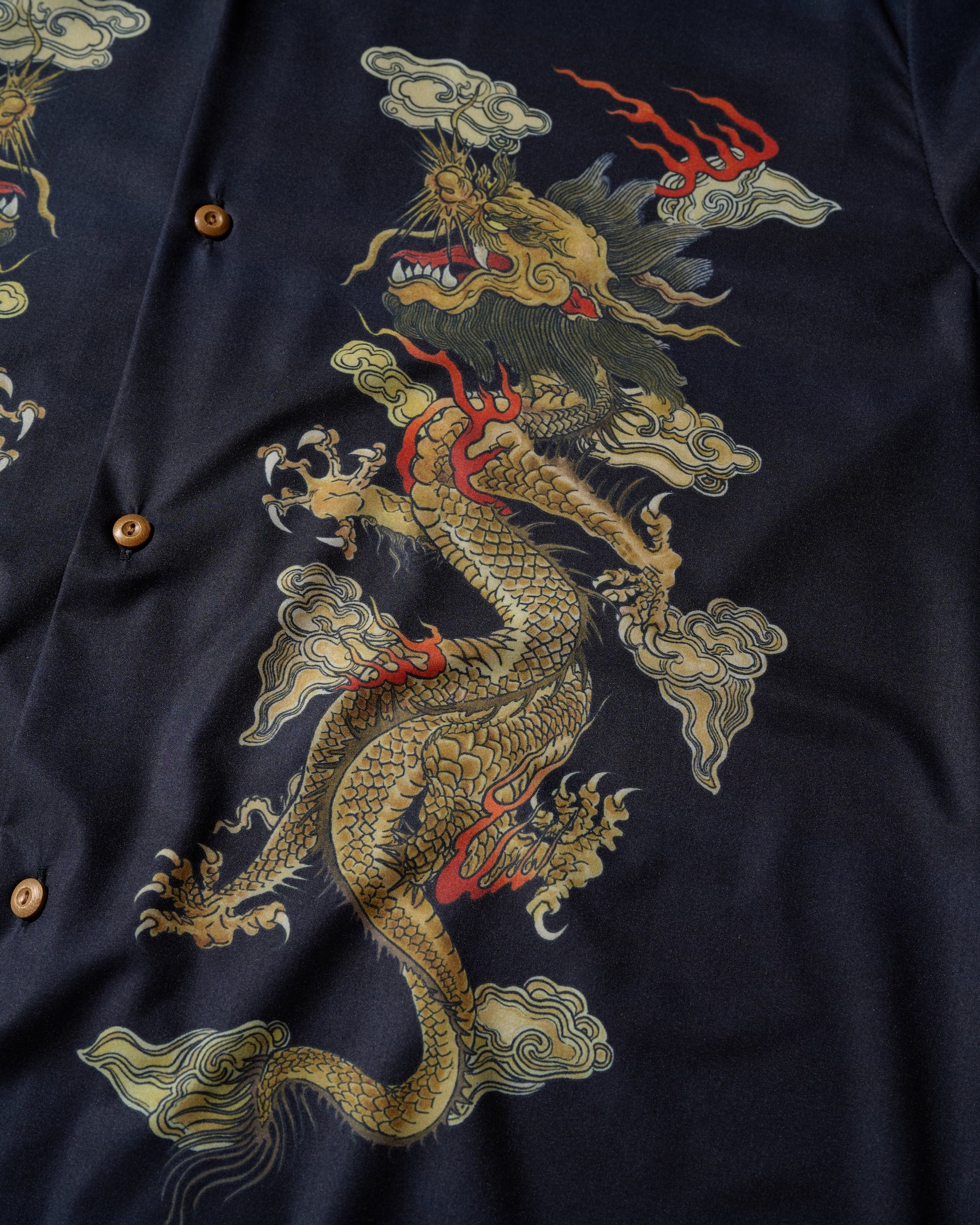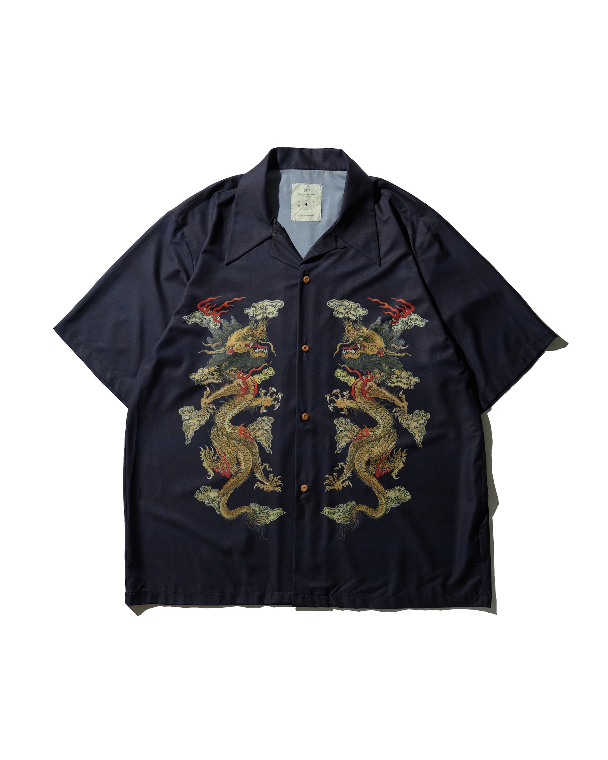 "DOUBLE DRAGON" OVERPRINT CAMP COLLAR SHIRT / OG