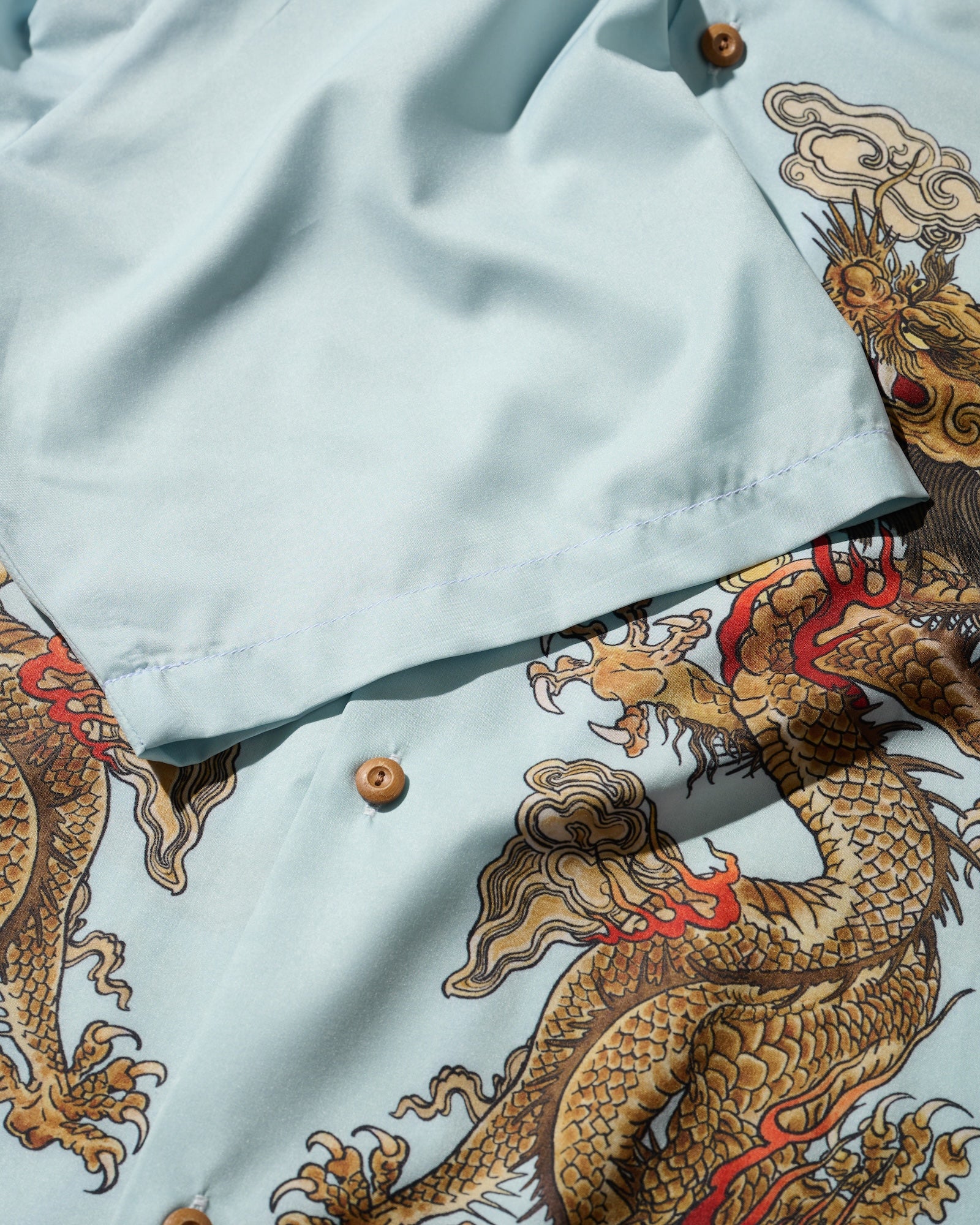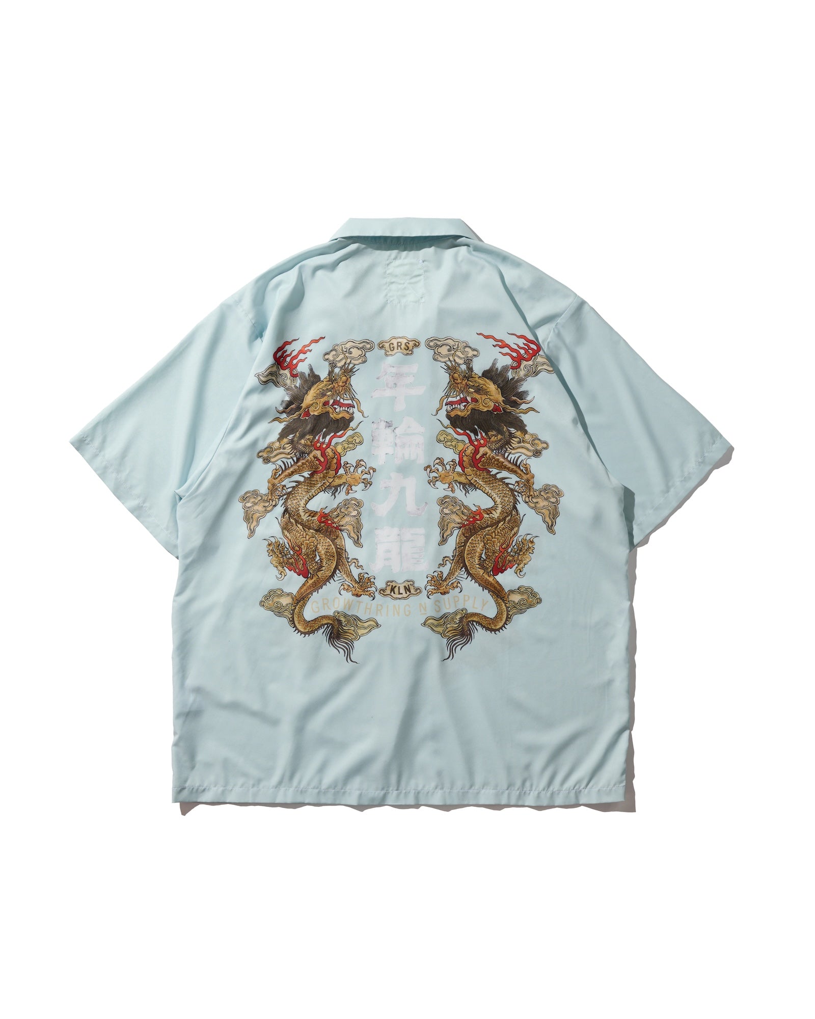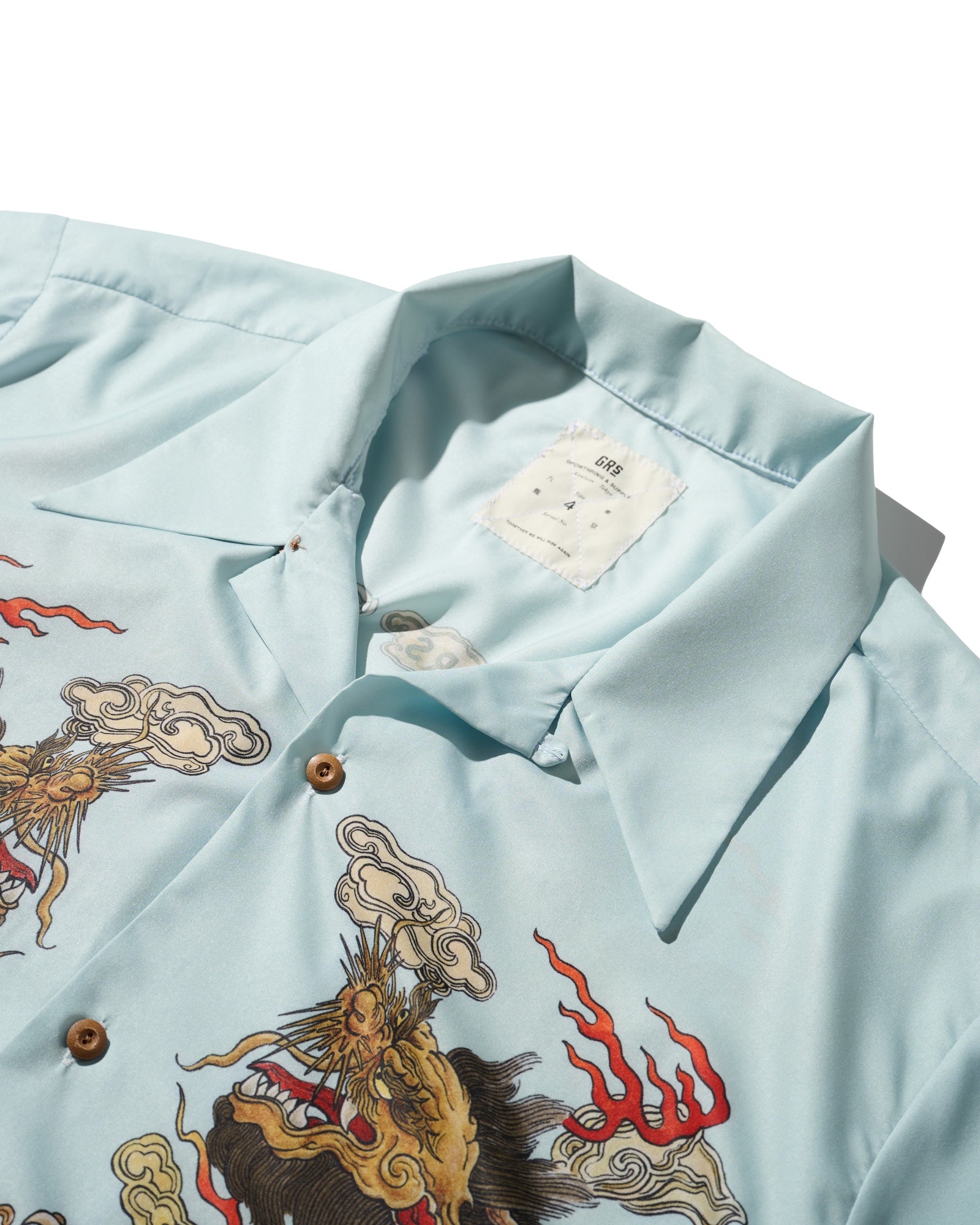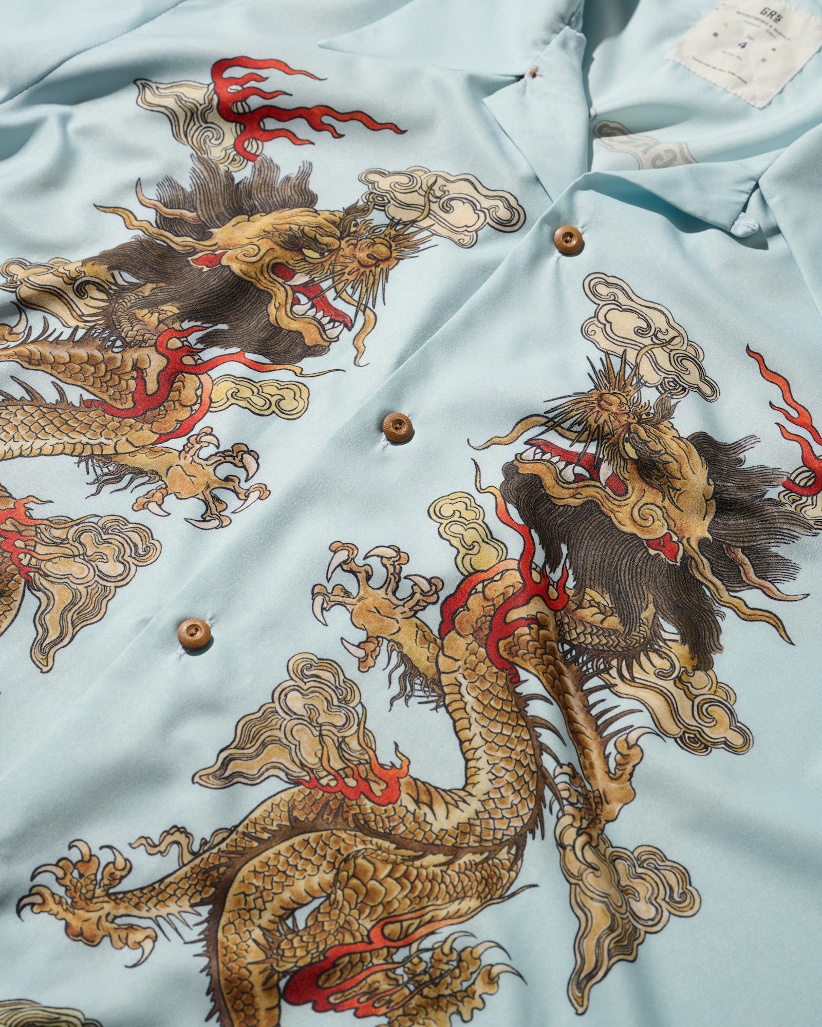 "Double Dragon" Overprint Camp Collar Shirt / Seaside Blue