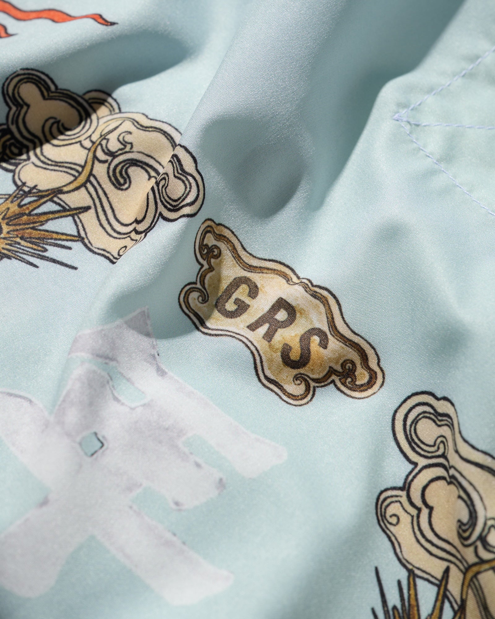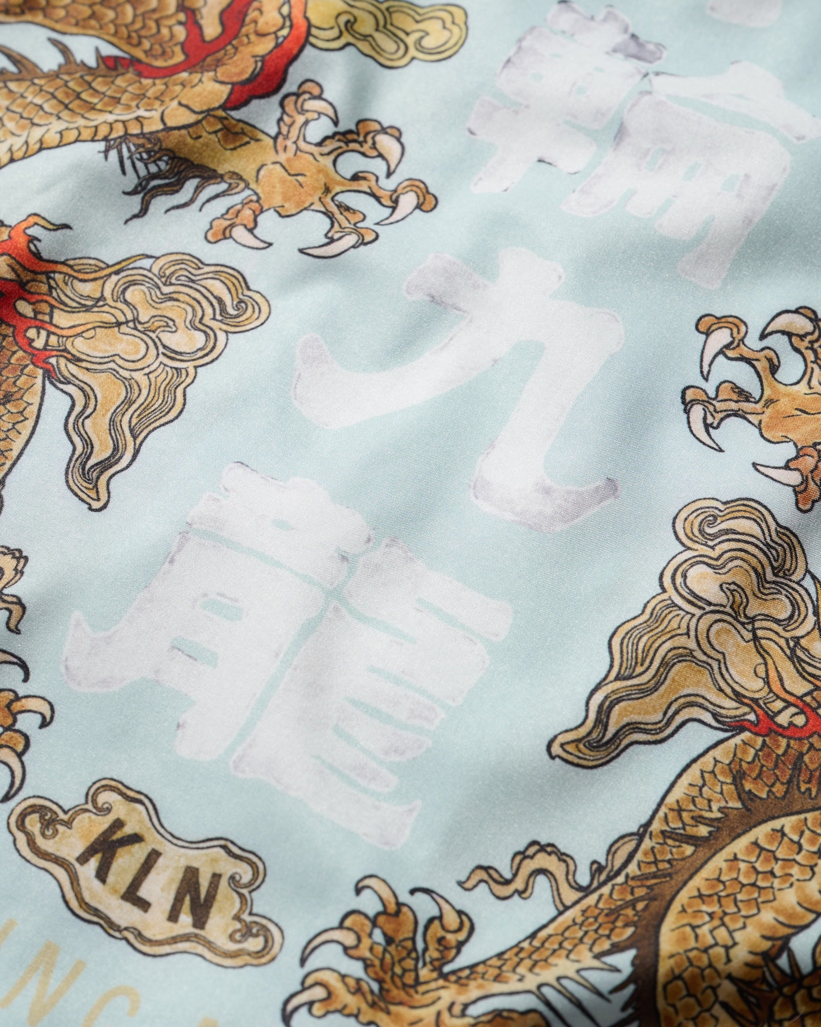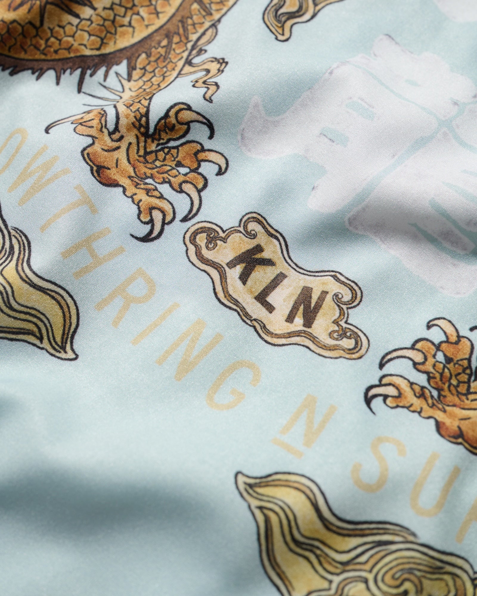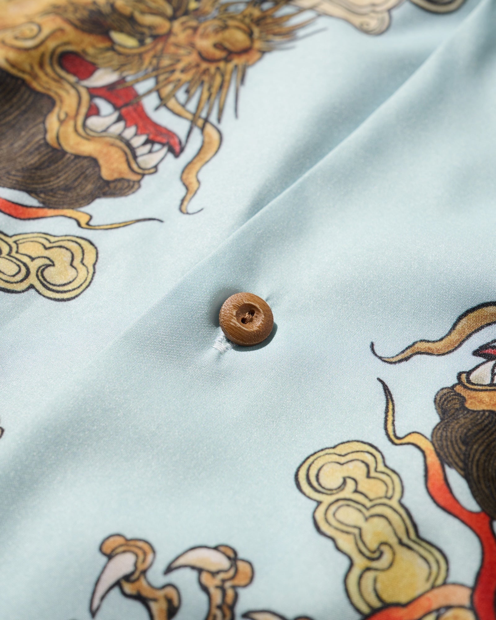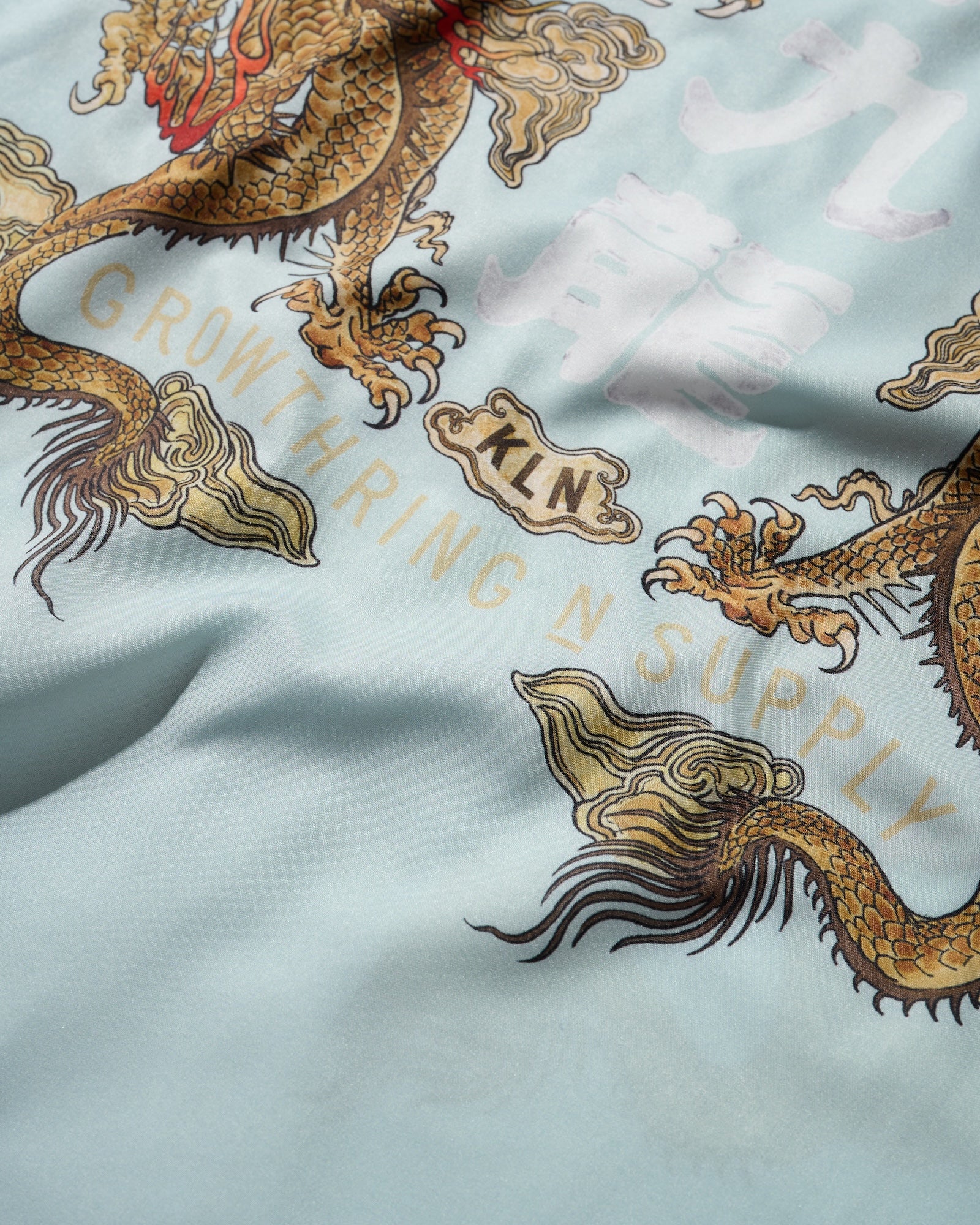 "Double Dragon" Overprint Camp Collar Shirt / Seaside Blue