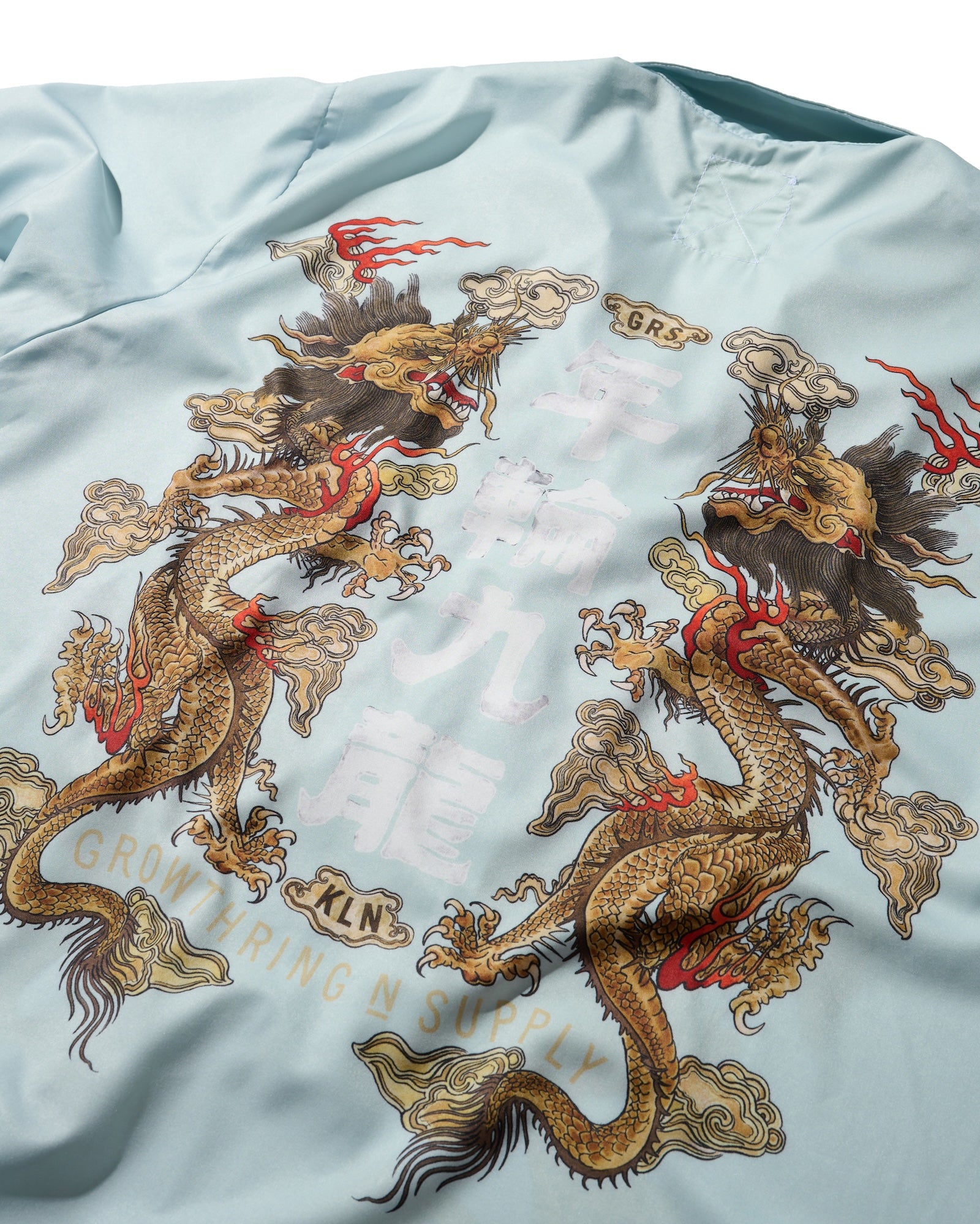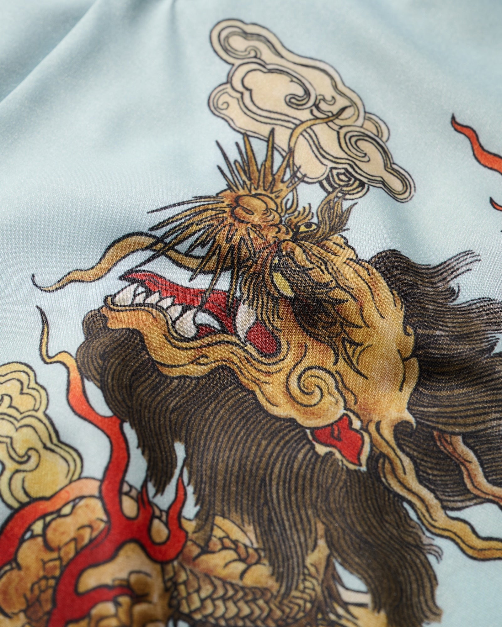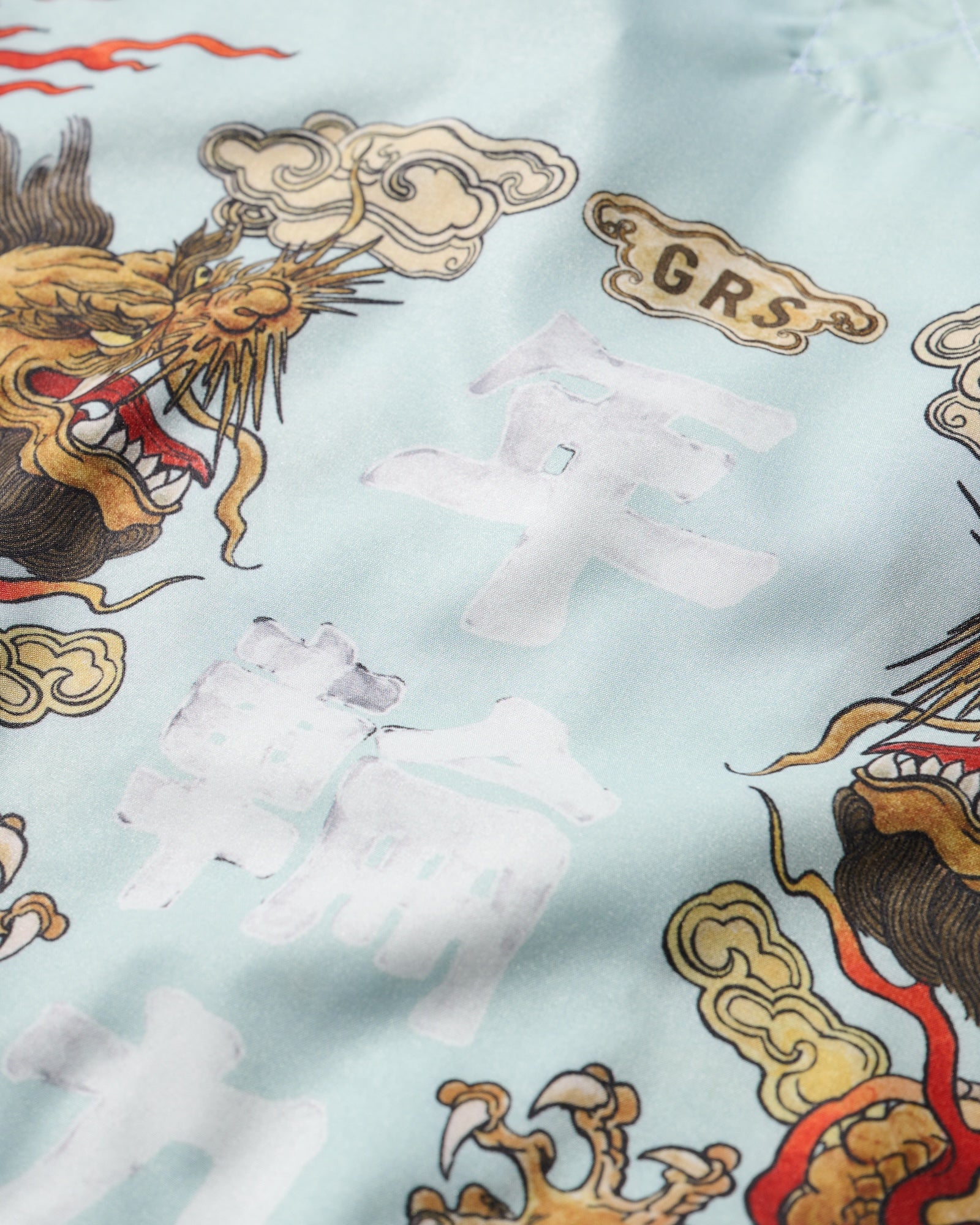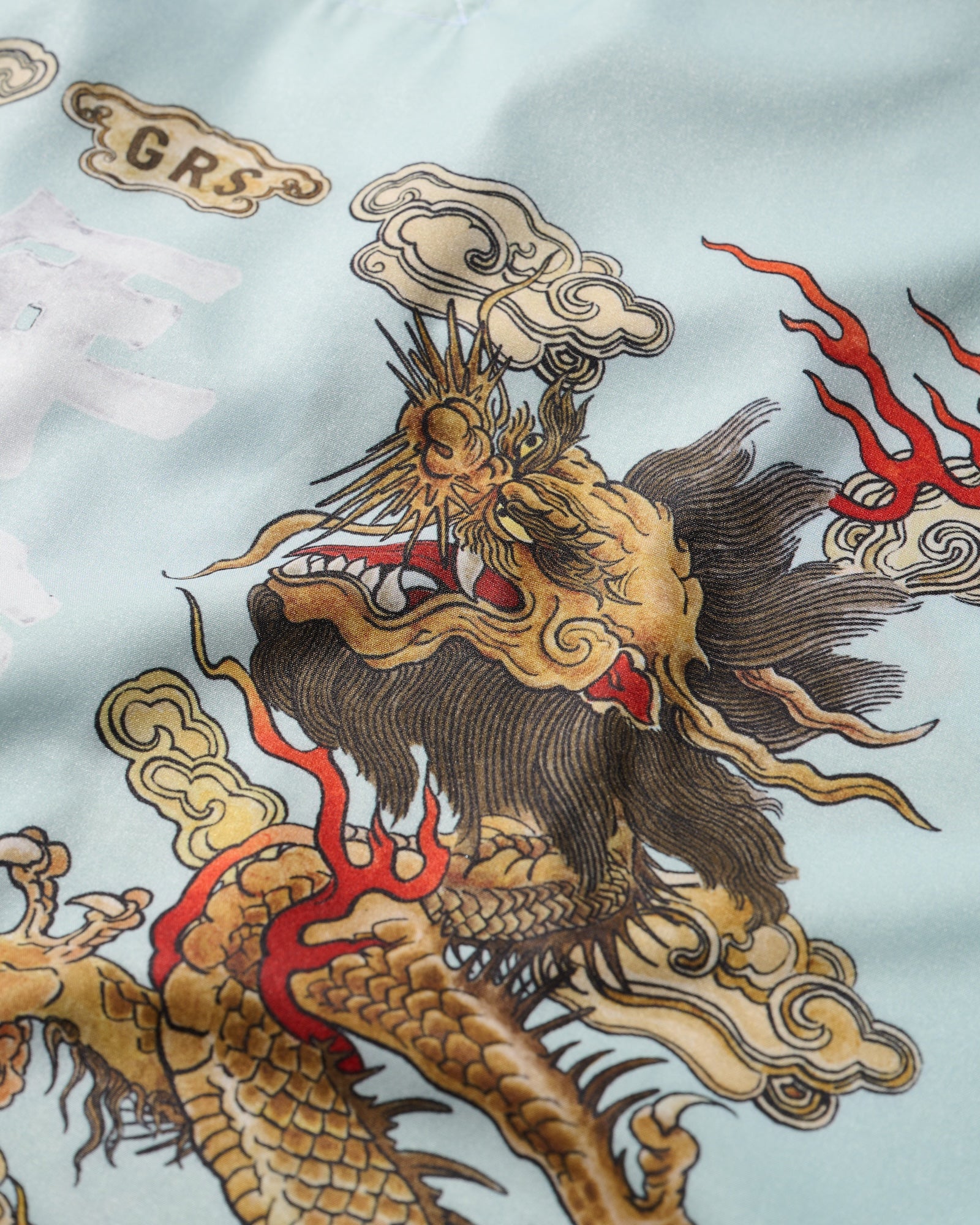 "Double Dragon" Overprint Camp Collar Shirt / Seaside Blue