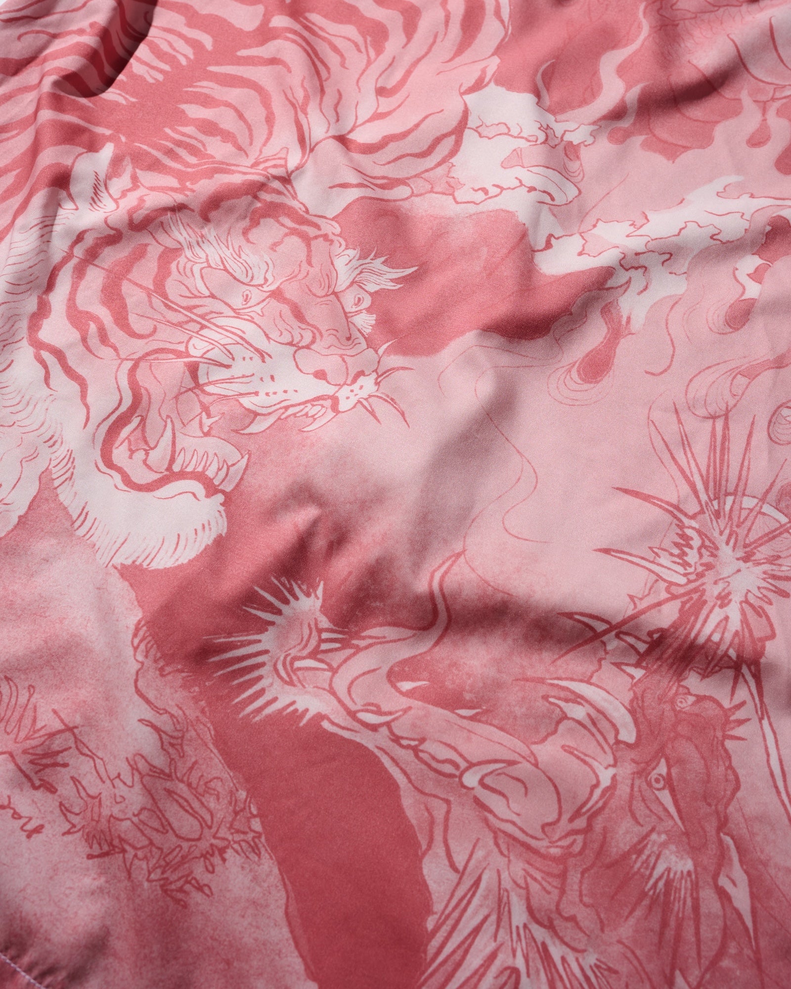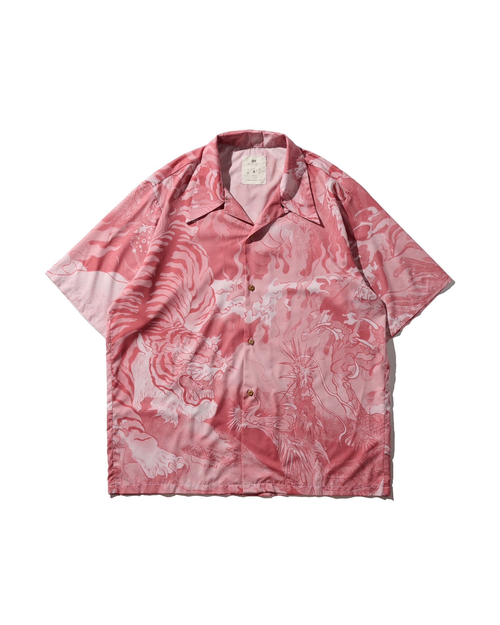 "Downhill Tiger & Dragon" Overprint Camp Collar Shirt / Dusty Pink