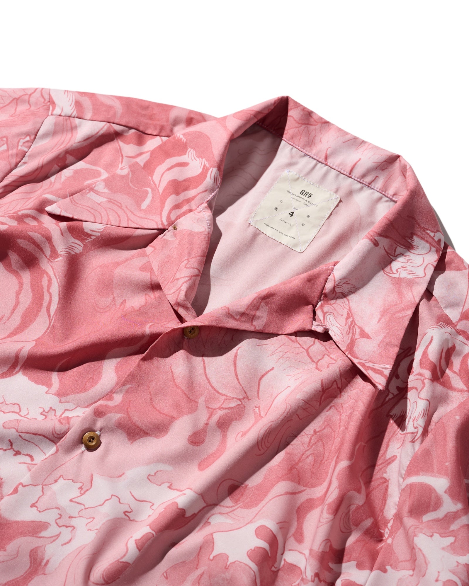 まず最初に発売されるのは、GRSignatureシリーズの特別な夏のスタイルと雰囲気のために作られた2つの新しい配色、ダスティピンクとシーサイドブルーです。これらは、淡い優雅な柔らかなレイヤーを持っています。生産経験を通じて、GRSignatureのオーバープリントシャツはカッティングを改良し、過去の極端なオーバーサイズカッティングを修正しました。また、Project Risingの第一弾以来使用されていなかったオープンカラーのデザインを採用し、本物の魂により忠実です。衣服本体はレーヨン再生繊維で作られており、全体の手触りは柔らかく滑らかです。その自然なドレープ感は、フィット感のあるシルエットを際立たせ、夏の外出に非常に便利です。