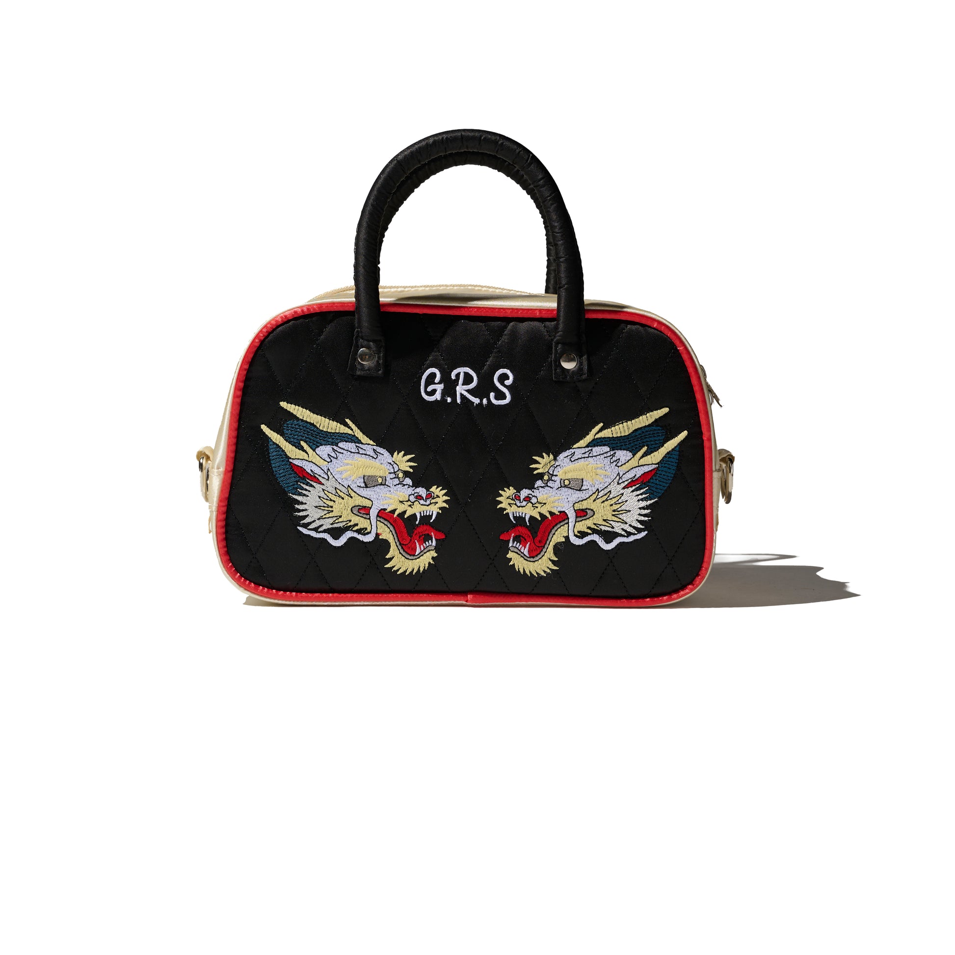 同時に発表されたシリーズでは、ツイル生地と刺繍の伝統的な組み合わせが、ジャケットだけでなくユニセックスのミニバッグやGRSが開発した新しいキャップなど、さらに多くのカテゴリーに広がります。これらのアイテムは、黒のサテン生地に象徴的な「ダブルドラゴン」のデザインが刺繍されたユニークなスカジャンスタイルの組み合わせが特徴です。