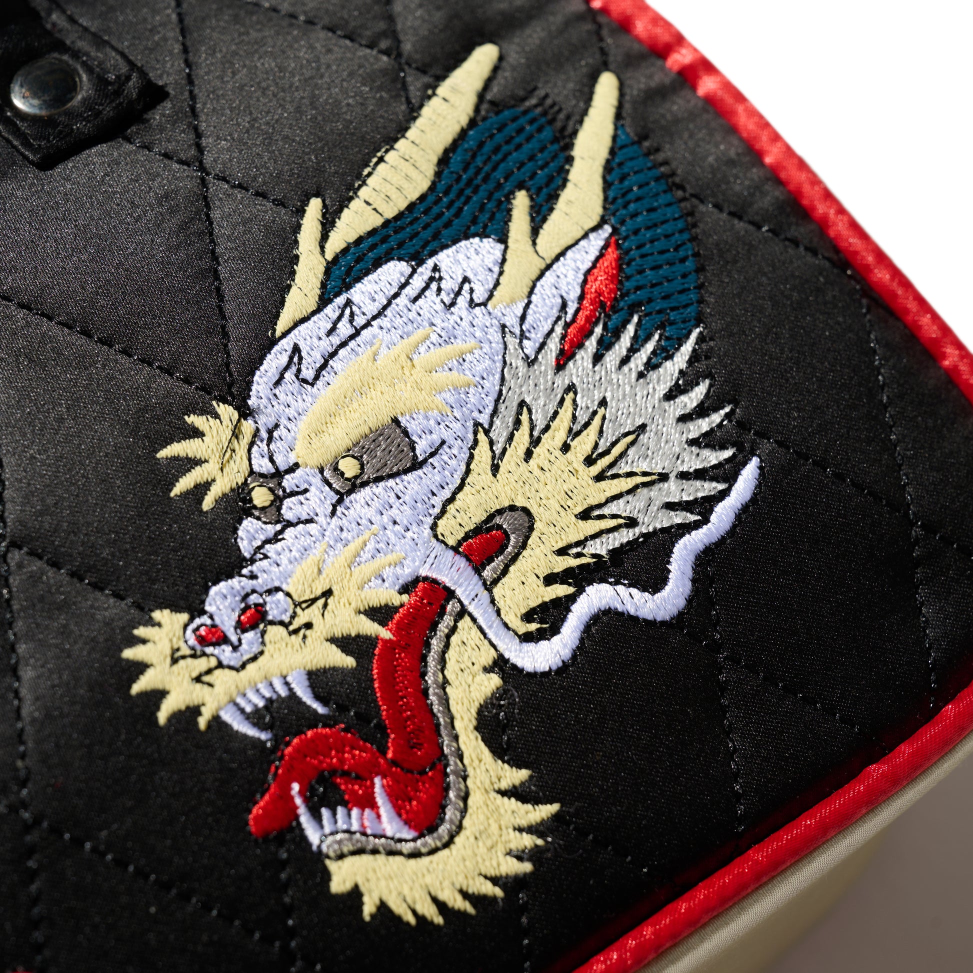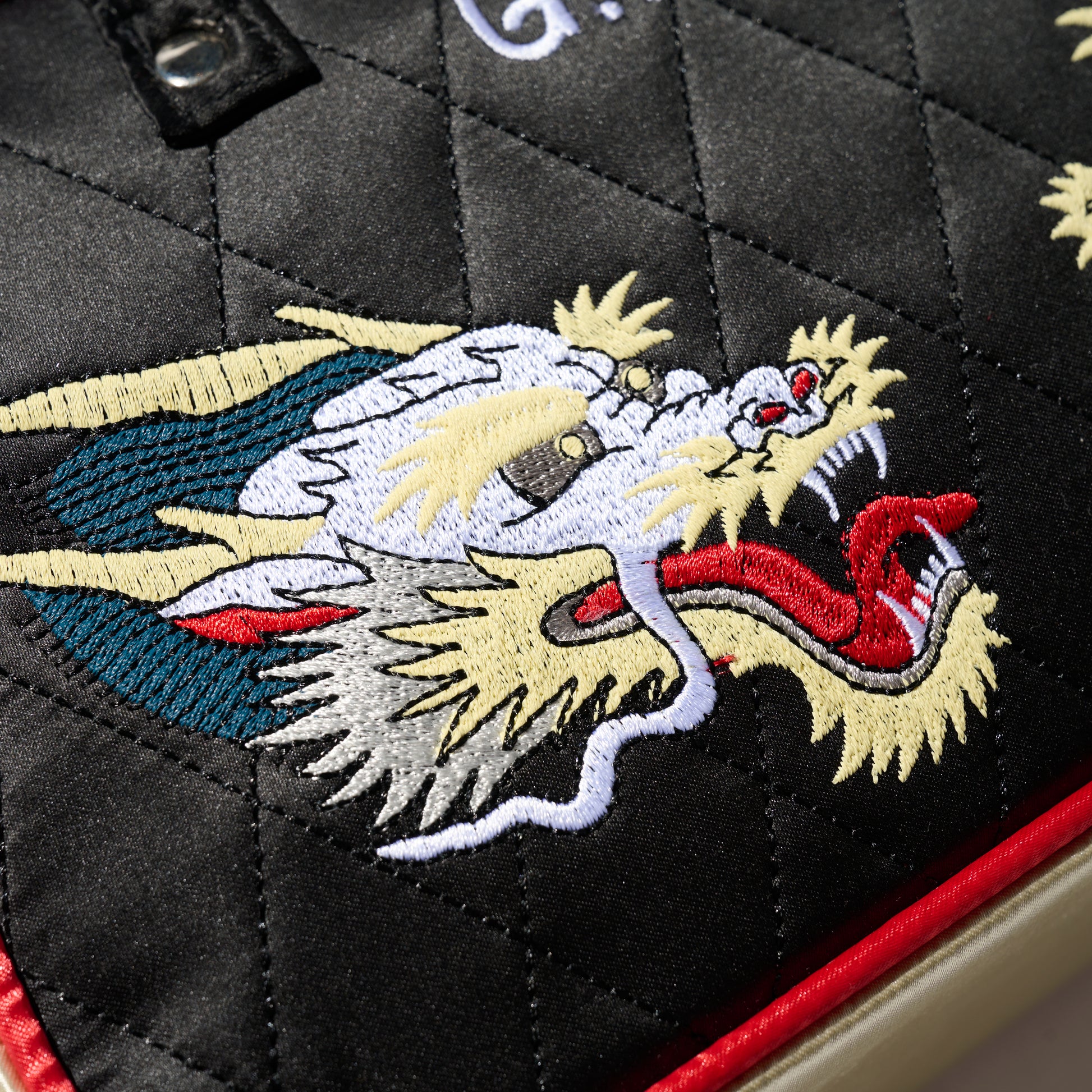 In the series released simultaneously, the traditional combination of twill fabric and embroidery extends to more categories beyond jackets, including the unisex Mini Bag and a brand new Cap developed by GRS. Both items feature a unique Sukajan-style combination, embroidered with the symbolic "Double Dragon" design on black satin.