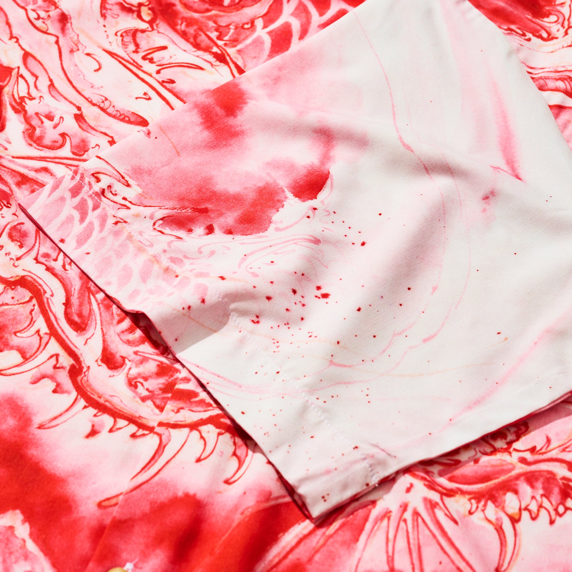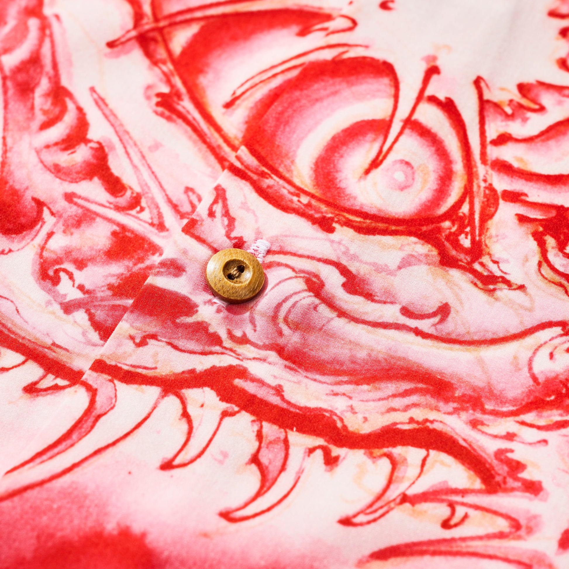 This is Dust‘s signature tattoo design, distinct from traditional Japanese dragons. The ”Red Dragon“ features fierce, wide-open eyes and an expression that exudes power, making it a striking representation of his style. The vibrant red color adds intensity and dynamism to the design, amplifying its commanding presence.