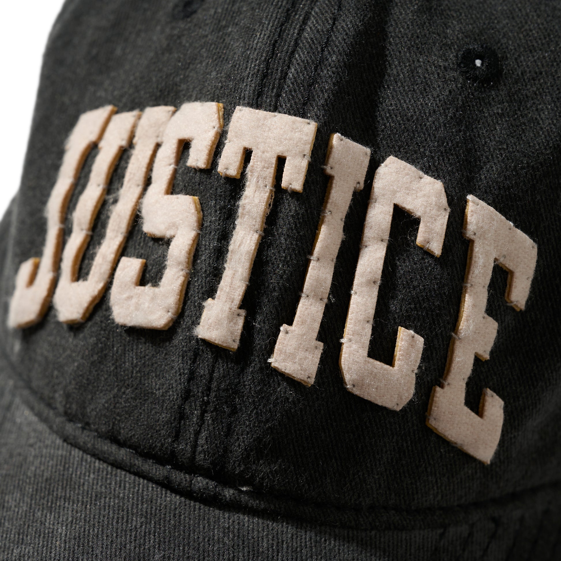 This collection features items themed around "Justice" including a distressed/washed cap, hoodie, and tee, each showcasing messages of "Justice" with a distressed effect crafted by hand. Notably, the Hand Quilted Cap by GRS features the word "JUSTICE" meticulously stitched by hand on the front. The trio of products carries the word "JUSTICE" throughout, symbolizing the central theme of the movie, which highlights the concept of justice. The design combines faded grey and black tones, subtly expressing discontent towards the "misjudgment" in the movie.