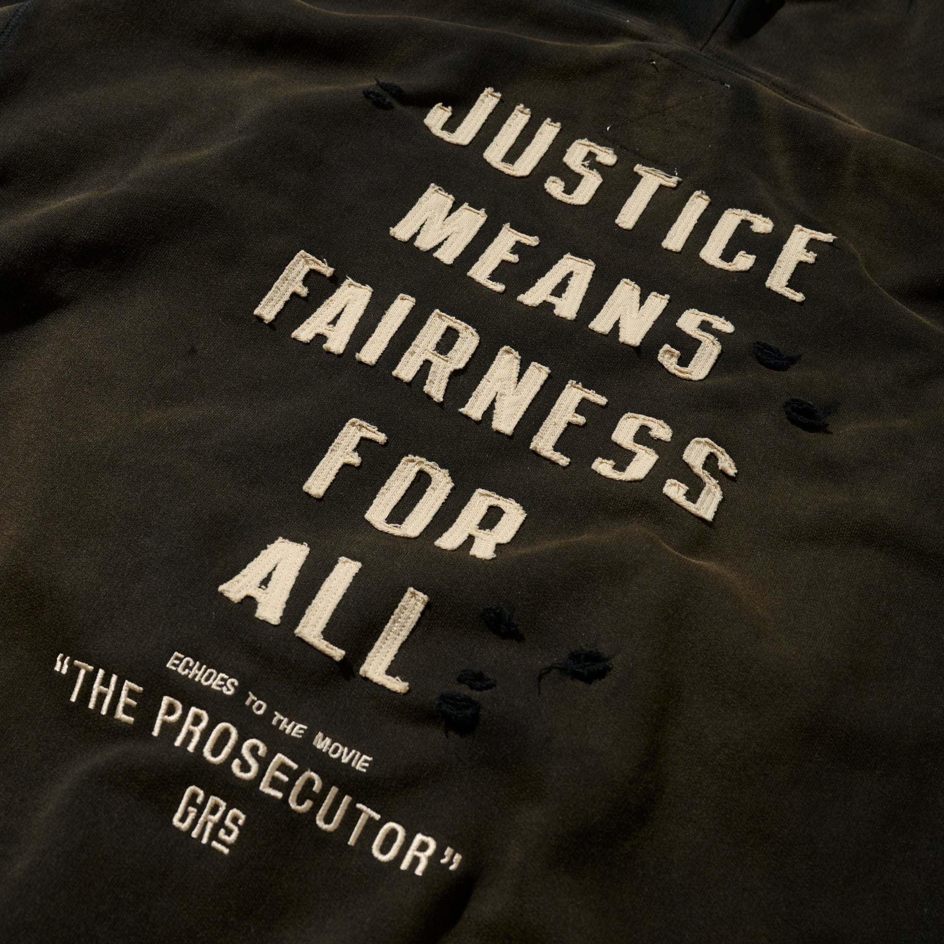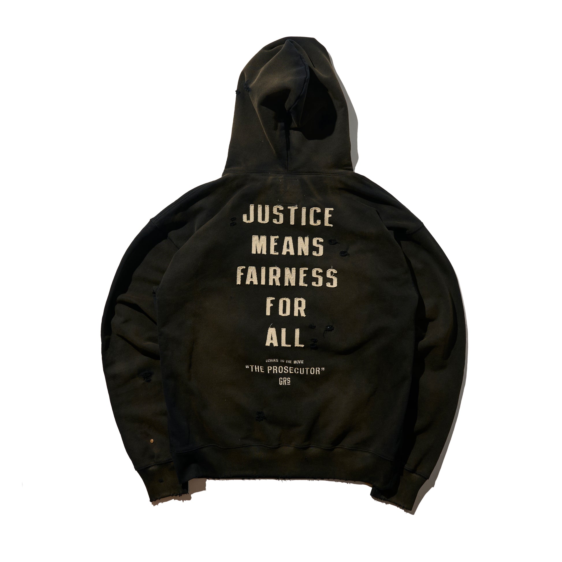 GRS x The Prosecutor Sun Faded Distressed “Justice” Hoodie