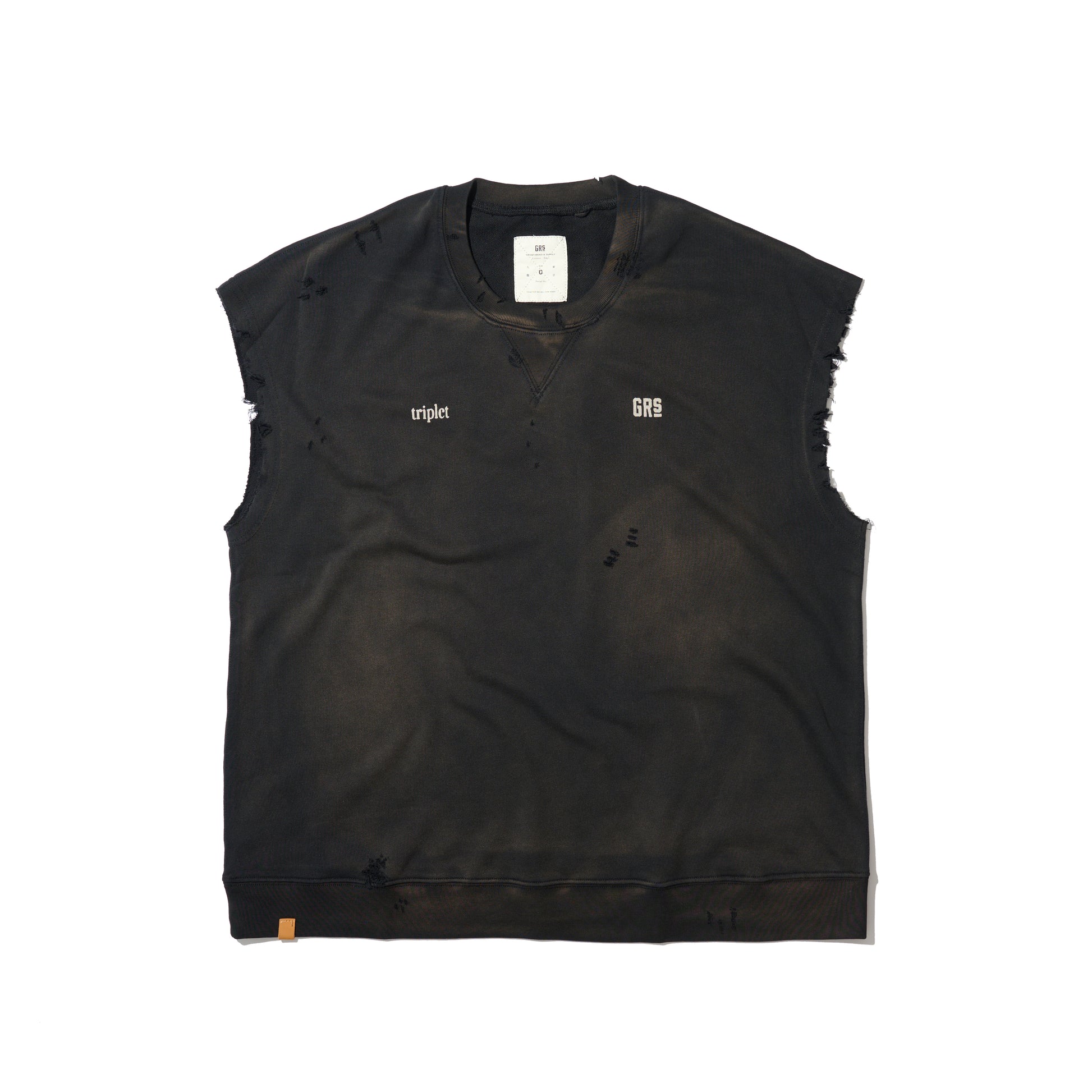 GRS X TRIPLET SUN FADED DESTROYED SLEEVELESS SWEAT TOP