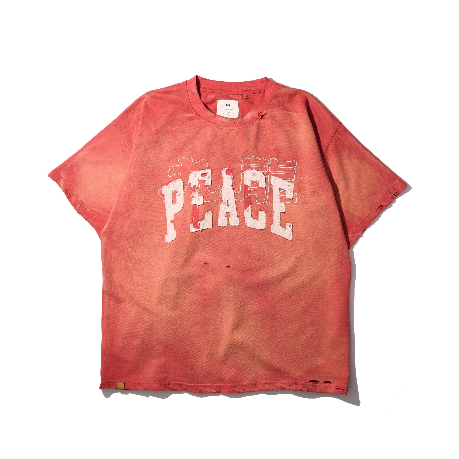 SUN FADED HEAVY DISTRESSED OVERSIZE PEACE TEE / BURGUNDY (HK EDITION)