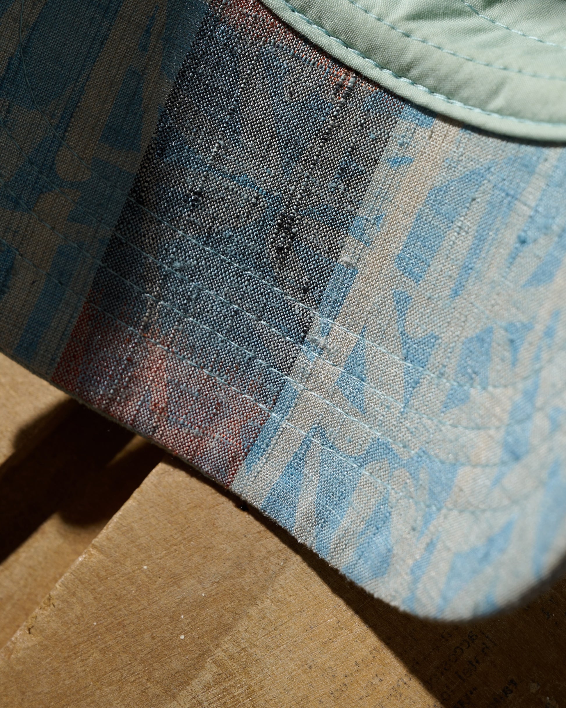All the fabrics were woven specifically for making kimonos. However, due to the prolonged economic downturn in Japan, the number of customers ordering custom kimonos has gradually decreased, leaving these precious fabrics to quietly wait in storage. We carefully selected different styles of fabric and remade them into shirts and hats. Since each roll of fabric can only produce two shirts or five to ten hats, the series will be released in extremely limited quantities. The color and pattern of each piece of fabric are unique, allowing every customer to own clothing that is like a work of art.
