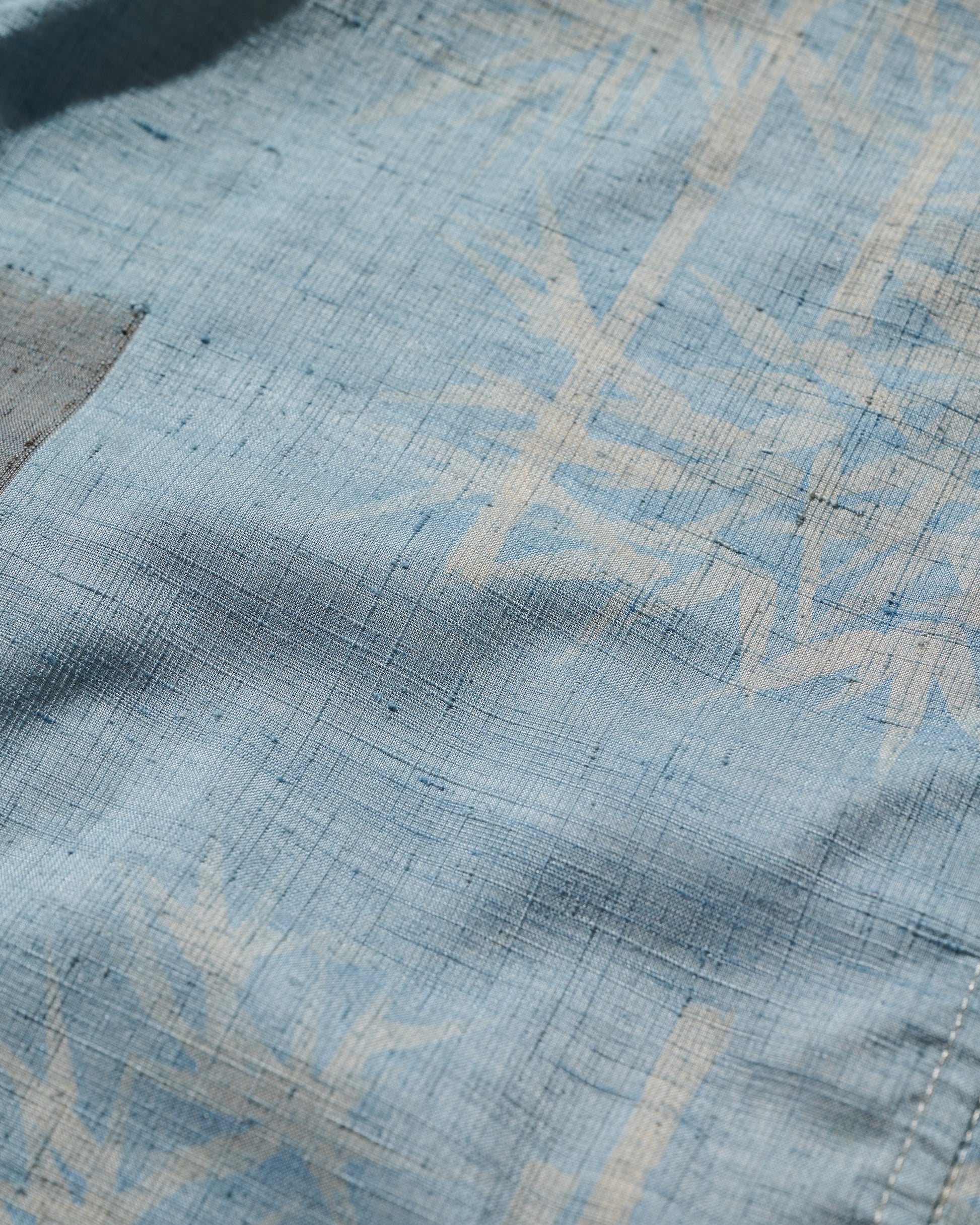 All the fabrics were woven specifically for making kimonos. However, due to the prolonged economic downturn in Japan, the number of customers ordering custom kimonos has gradually decreased, leaving these precious fabrics to quietly wait in storage. We carefully selected different styles of fabric and remade them into shirts and hats. Since each roll of fabric can only produce two shirts or five to ten hats, the series will be released in extremely limited quantities. The color and pattern of each piece of fabric are unique, allowing every customer to own clothing that is like a work of art.