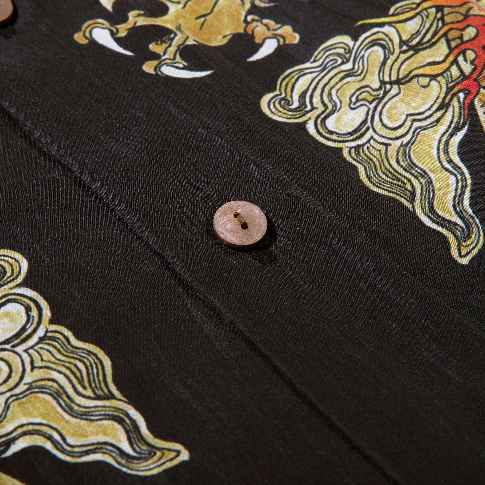 KOWLOON DOUBLE DRAGON PRINT SILK BOWLING SHIRT