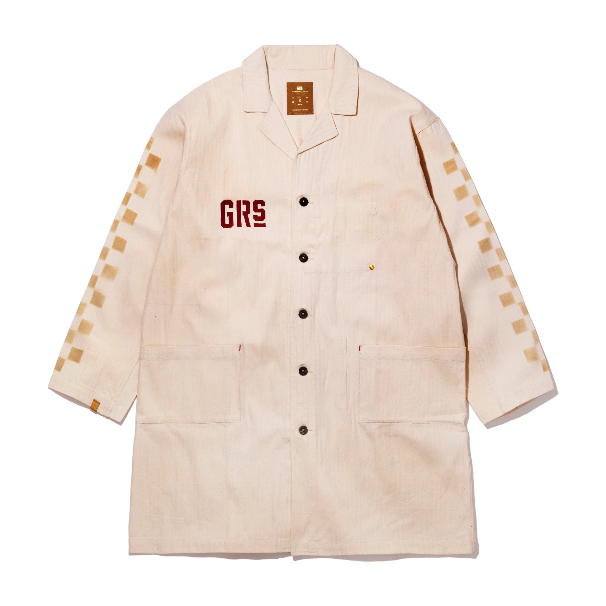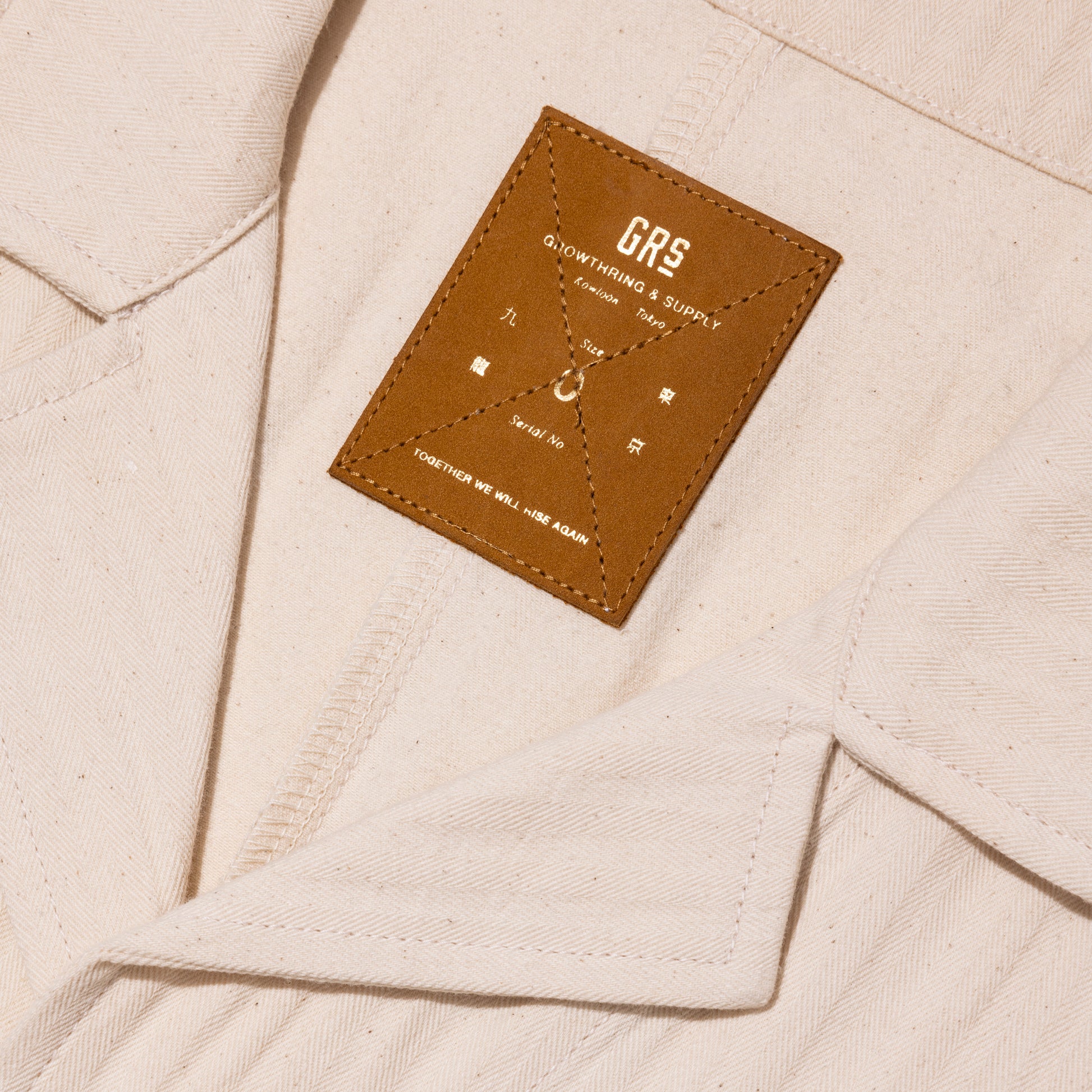 ![[PREORDER] Lightweight Off White Herringbone Twill Work Jacket w/Themed Hand Stencil](http://grs.club/cdn/shop/files/GRproductSept0366_061023copy.jpg?v=1697787437&width=1445)