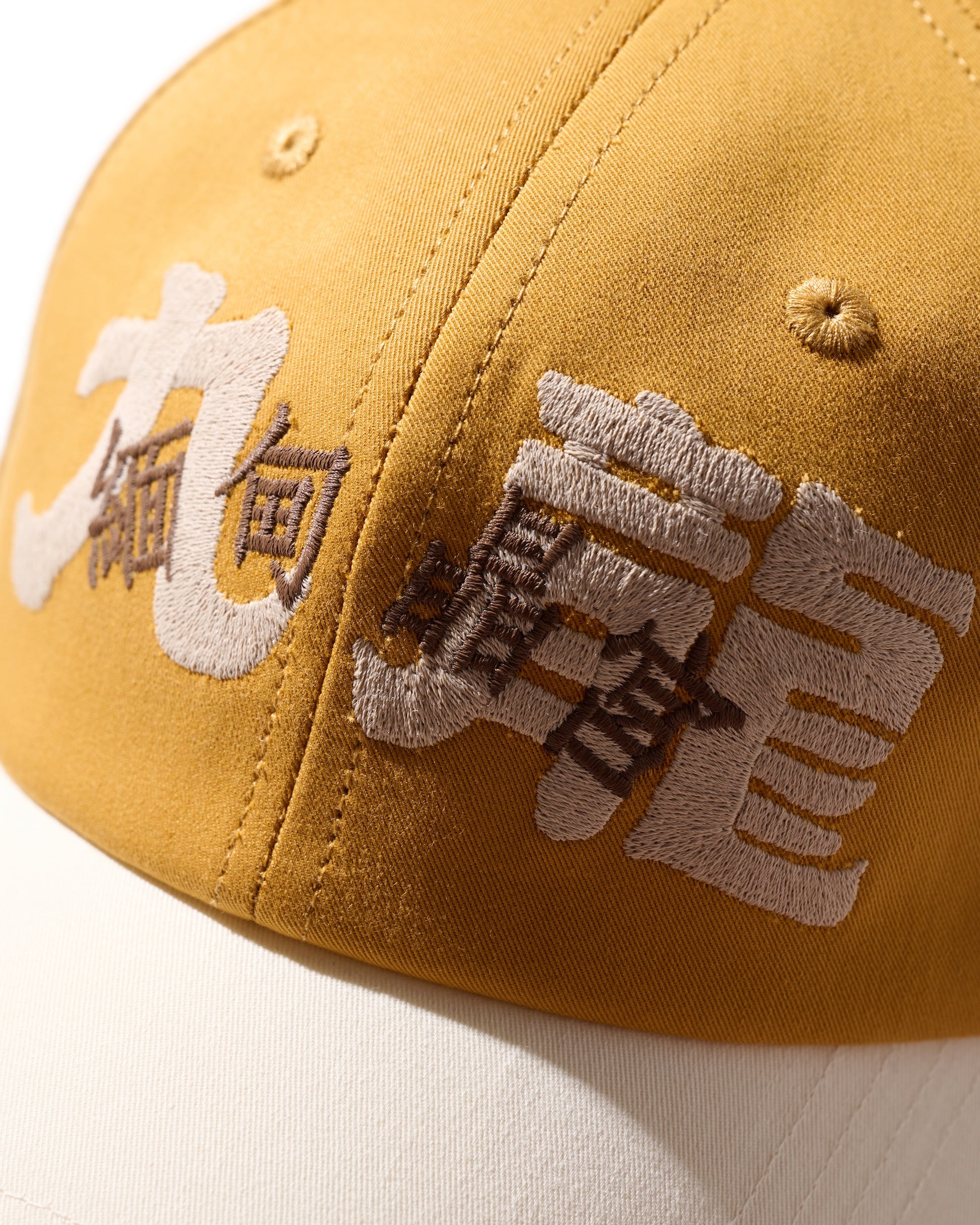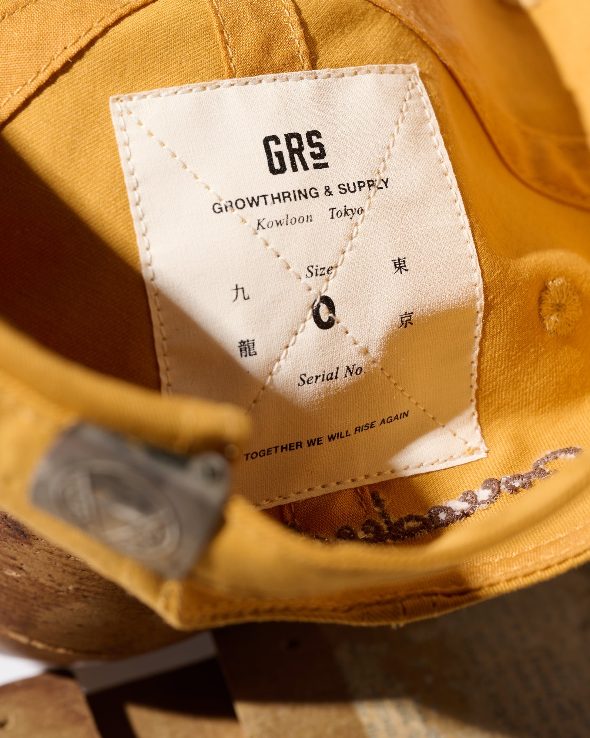 Together, they are releasing two essential GRS items: a Tee and a Cap. These pieces feature the signature yellow/white color palette often used by MDJG’s founders, along with "Kowloon" and "Meen Deen Jing Gung" graphics. A newly designed "Meen Deen Jing Gung" logo, created in a Middle Eastern typography style, is incorporated using a mix of embroidery and silkscreen printing. The pieces reflect GRS’s attention to craftsmanship and detail, blending street fashion with a playful twist. The result is a collaborative synergy that bridges both brands’ distinct identities.