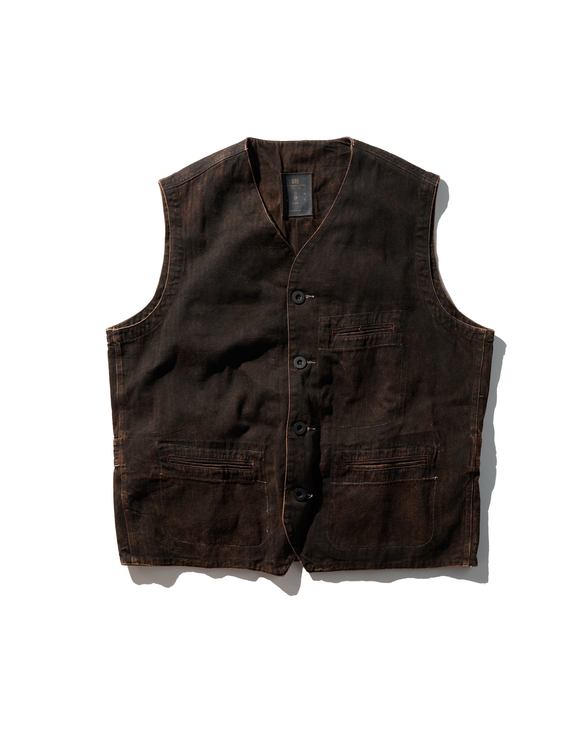 MUD DYEING HERRINGBONE TWILL WAISTCOAT