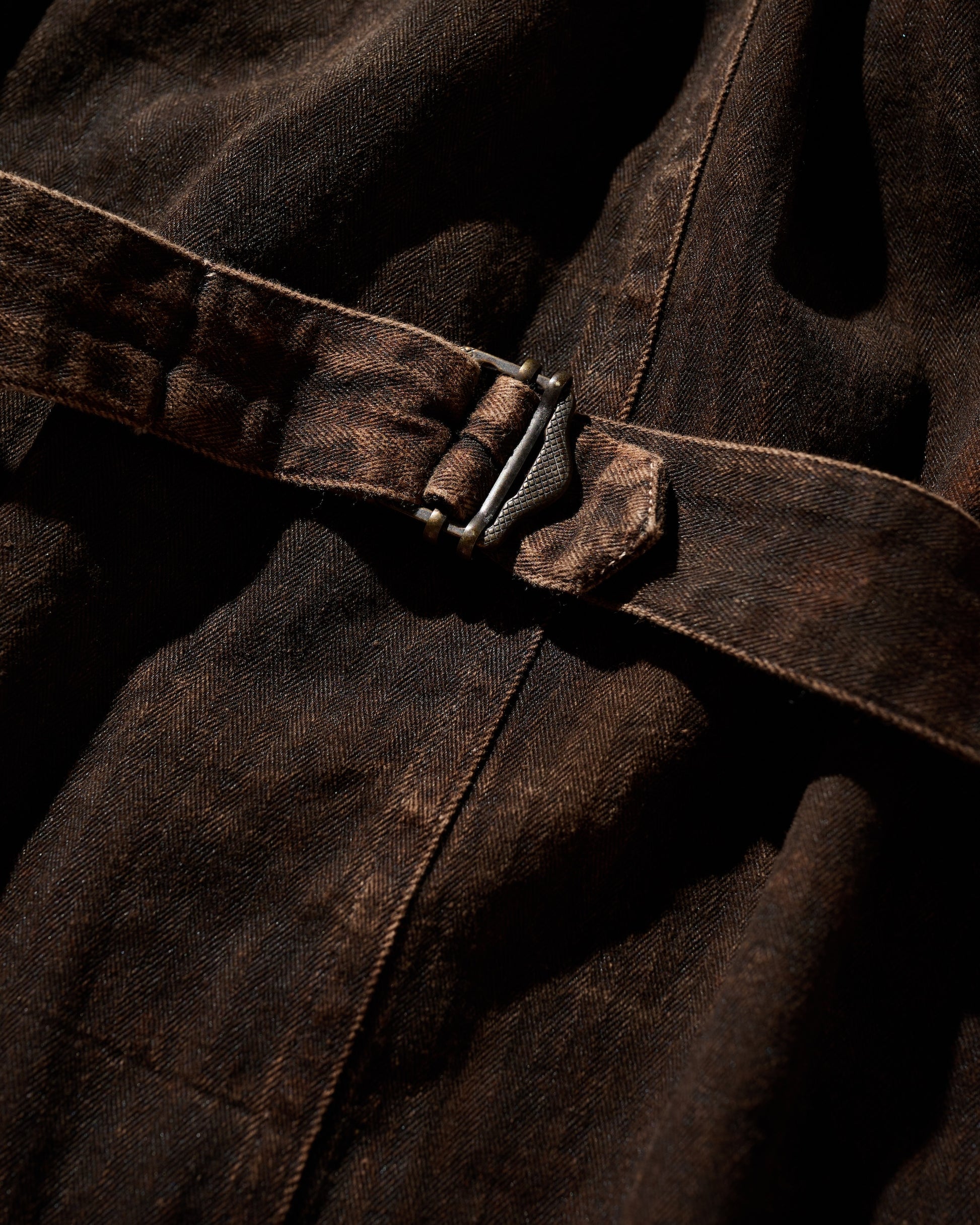 After months of the mud dyeing process, each product in the series exhibits different shades and textures.