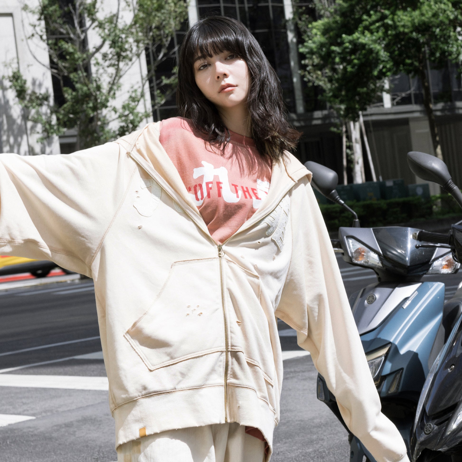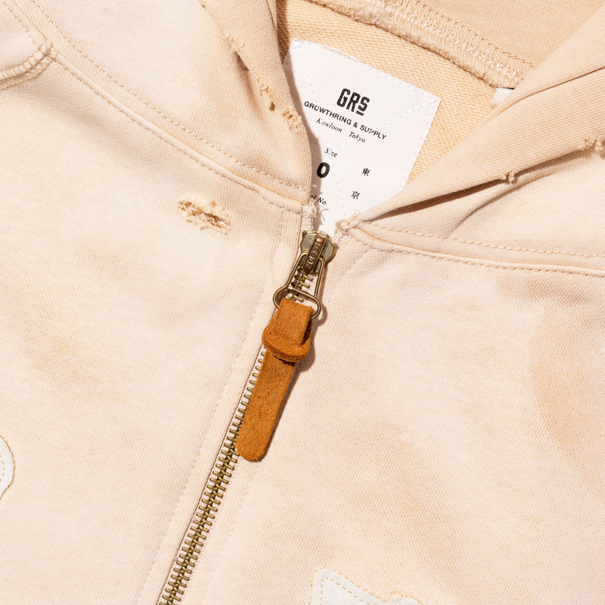 Sun Faded Kowloon Lightweight Zip-up Hoodie / Pastel Beige