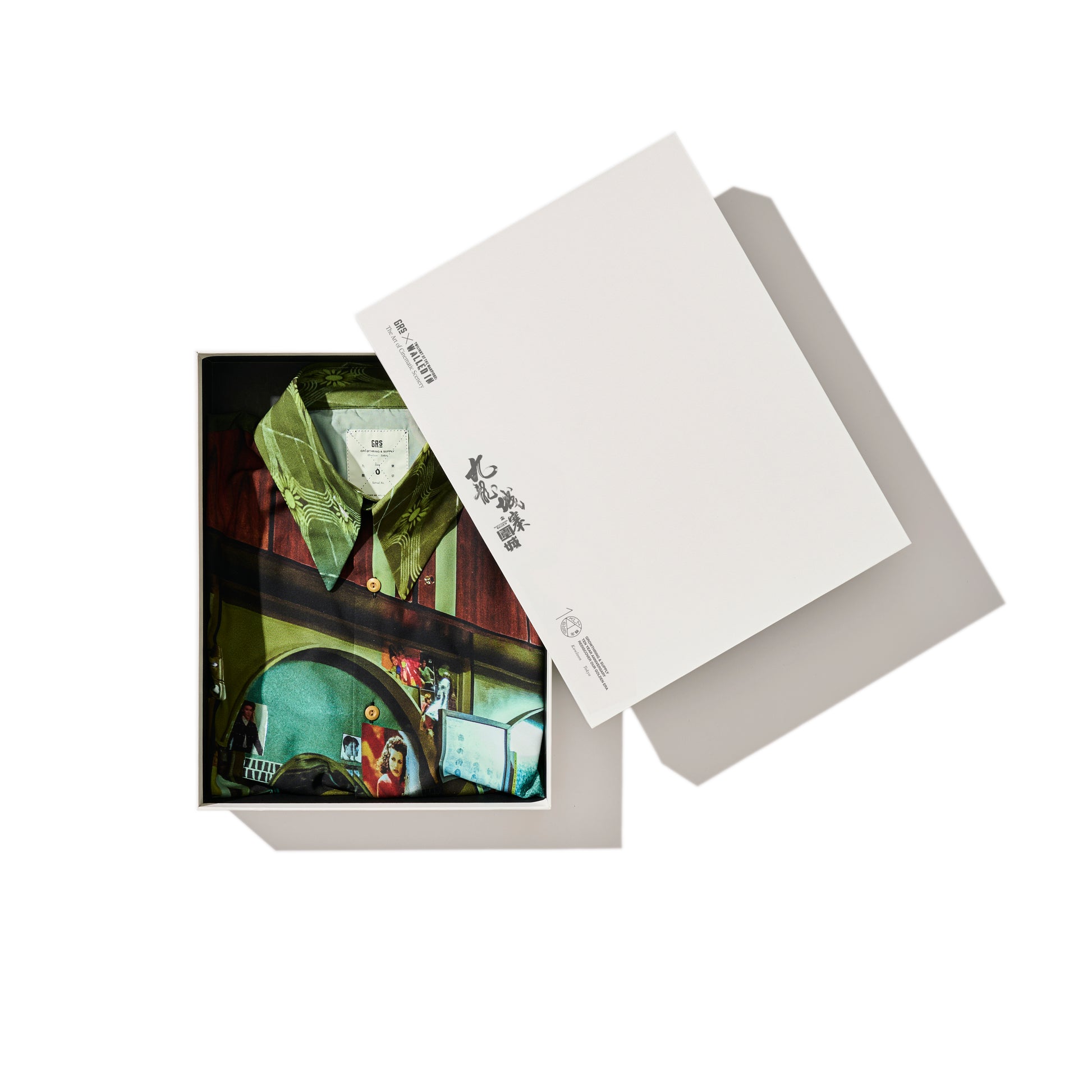 This collaboration is led by a Photo Overprint Shirt, exclusively tailored by the brand and featuring high-quality printing technology. Together with a box which featuring elements related to the theme, making it highly collectible.