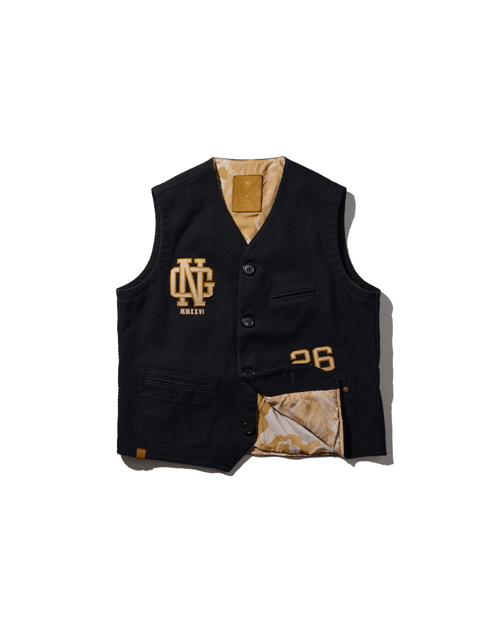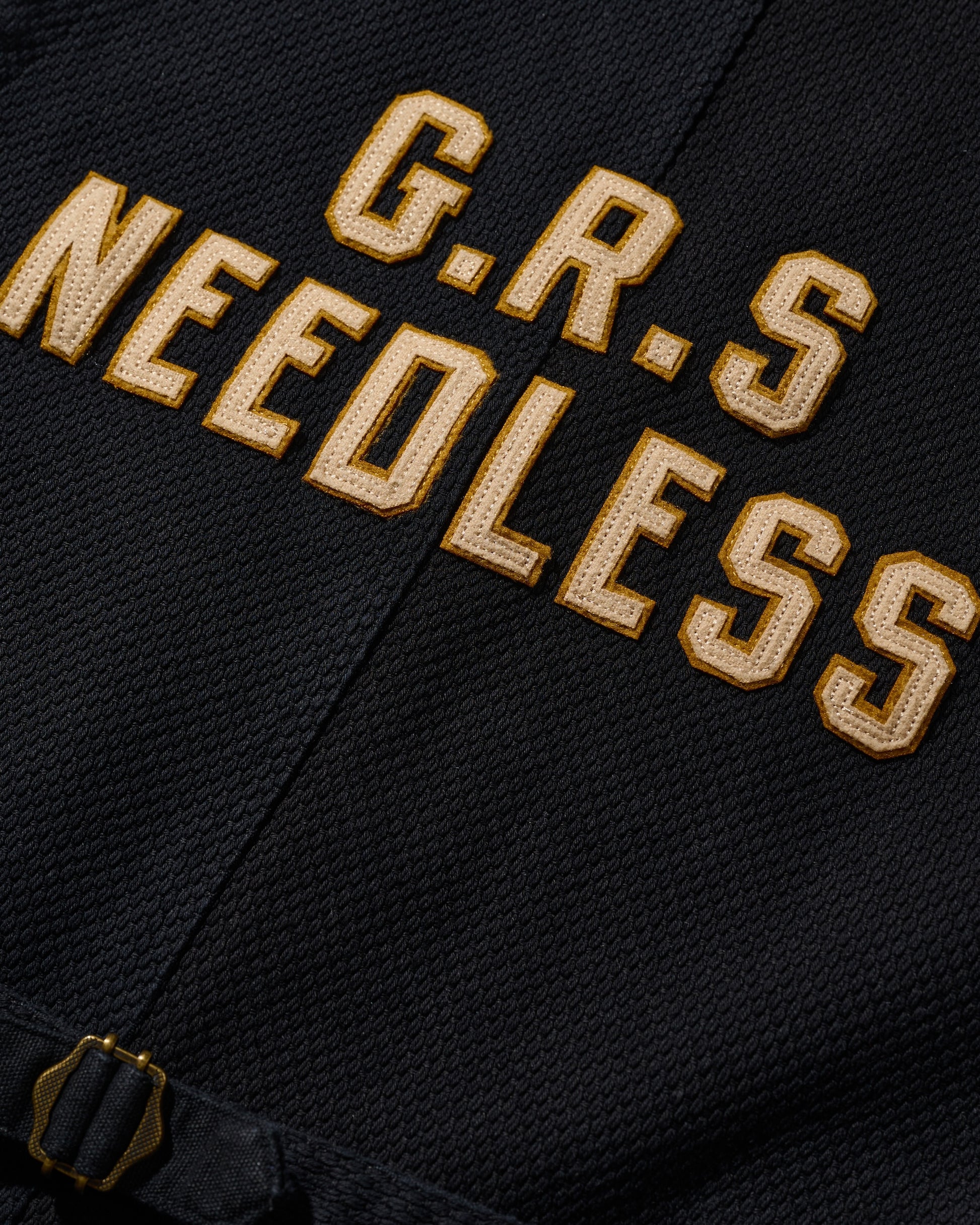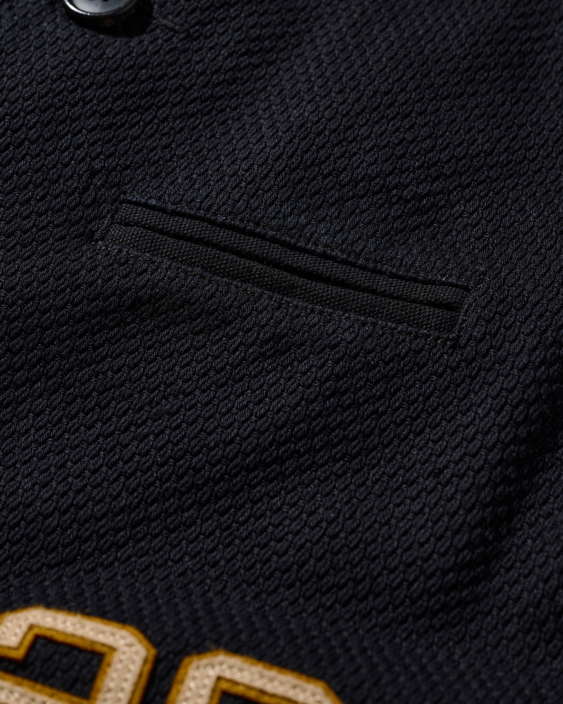 Utilizing KUROZOME natural black dyeing techniques and incorporating emblematic designs from classic American team sportwear, this piece aligns with the theme of "守破離," particularly the "破" element, signifying a break from tradition and reaching a realm that surpasses it.