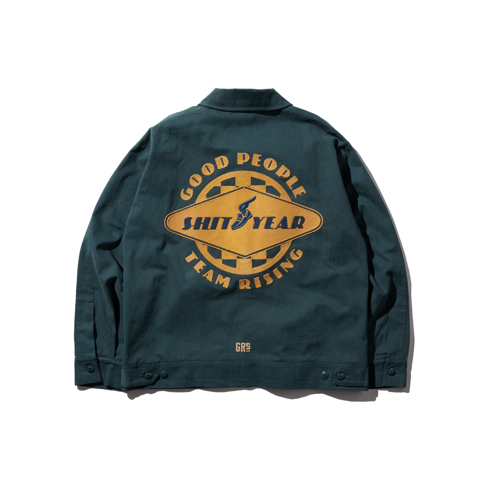 “Shit Year Good People” Mechanic Jacket / Gotland Green
