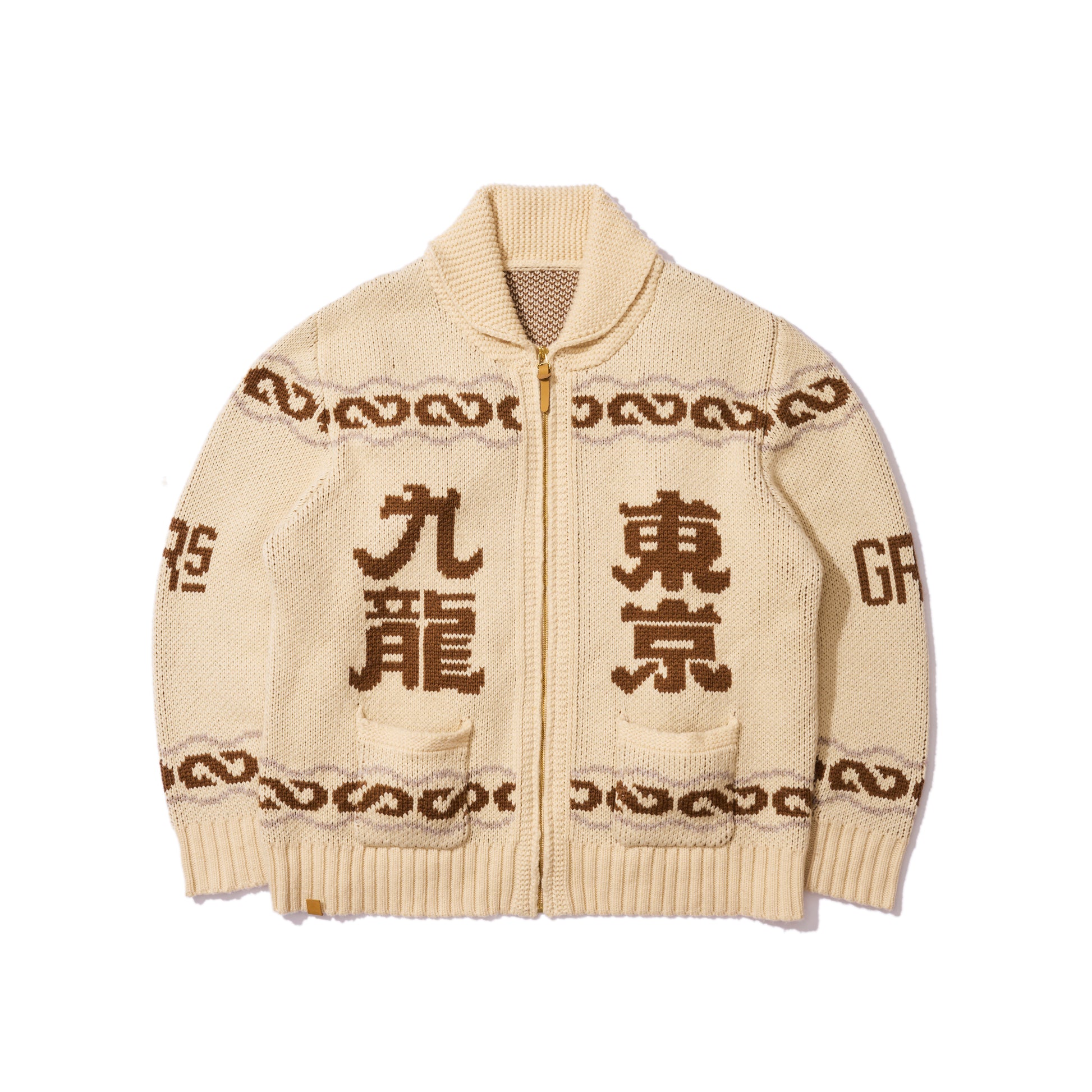 Traditional Canadian Cardigan Cut, made with lightweight material suitable for Asian climates, incorporating the iconic Kowloon and Tokyo fonts of the brand, and featuring a dragon head and vine pattern designed by Miyama Yu on the back.